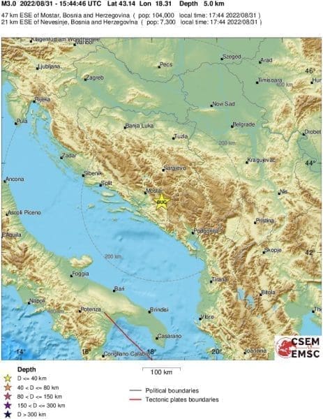 Iako je prema prvim informacijama EMSC-a potres bio magnitude 3.4 prema Richteru, u međuvremenu je smanjen na 3.0.