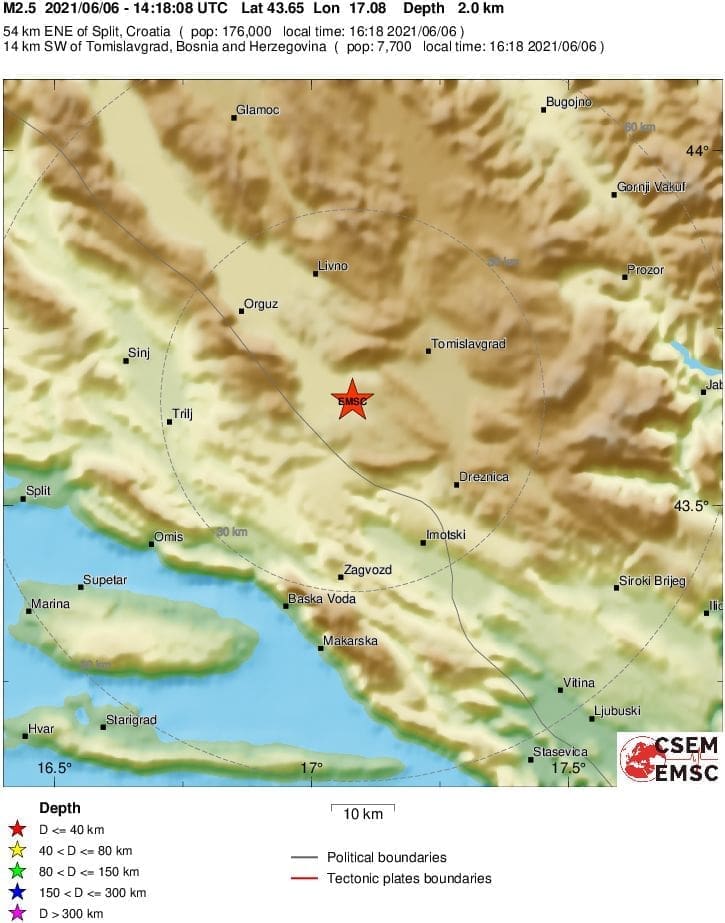 Drugi potres se dogodio u 16 sati i 18 minuta. Magnituda mu je bila 2.5 prema Richteru, a epicentar 14 kilometara od Tomislavgrada, odnosno 54 kilometra istok-sjeveroistočno od Splita.