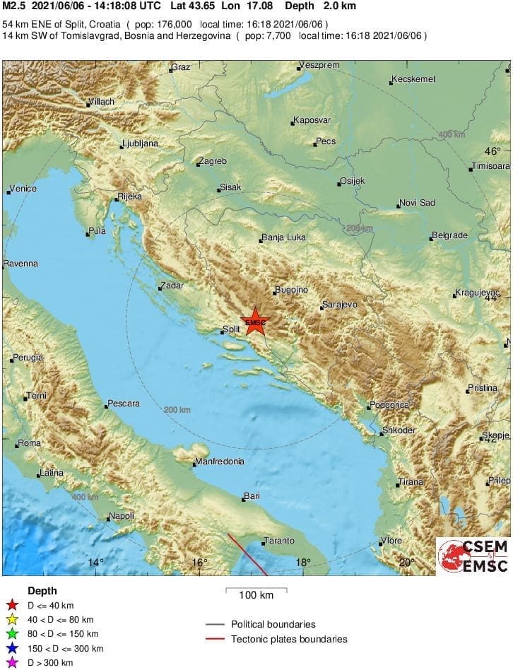 U nedjelju poslijepodne dogodila su se dva slabija potresa na jugu BiH.