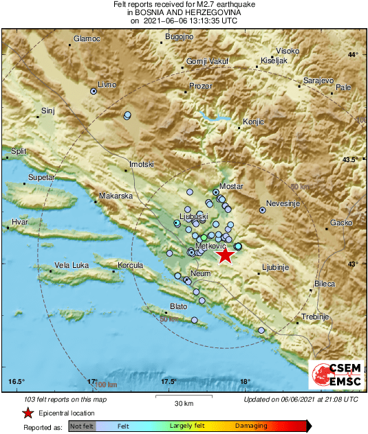 "Zvučalo je kao eksplozija", "Zatresli na par sekundi", "Tutnjava, ali nije bilo većeg podrhtavanja", "Osjetio se poprilično na katu kuće, Kočine, Mostar, kratko trajao" - neki su od komentara s aplikacije LastQuake.