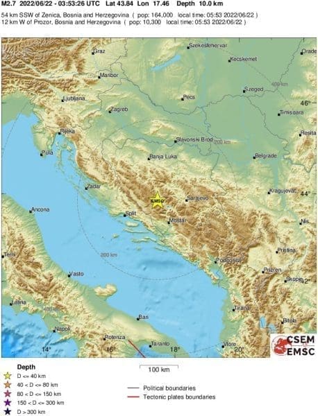 Dubina ovog potresa se procjenjuje na 10 kilometara.