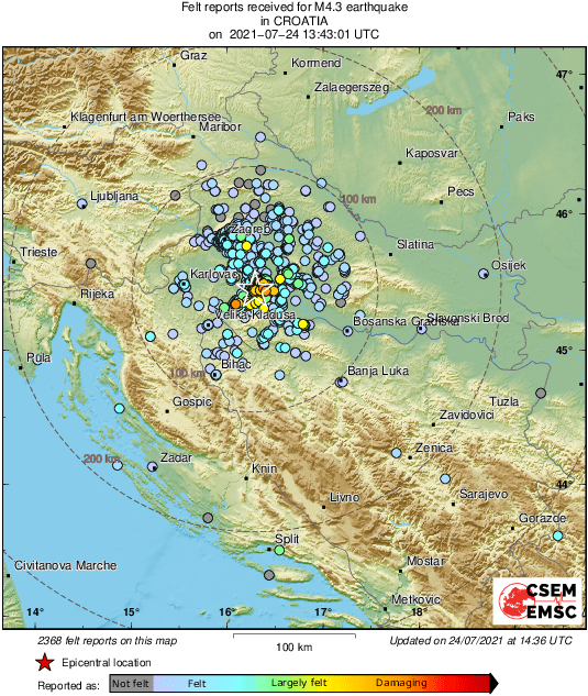 Map of felt reports received so far following the #earthquake M4.3 in Croatia 40 min ago pic.twitter.com/UjnM931T93