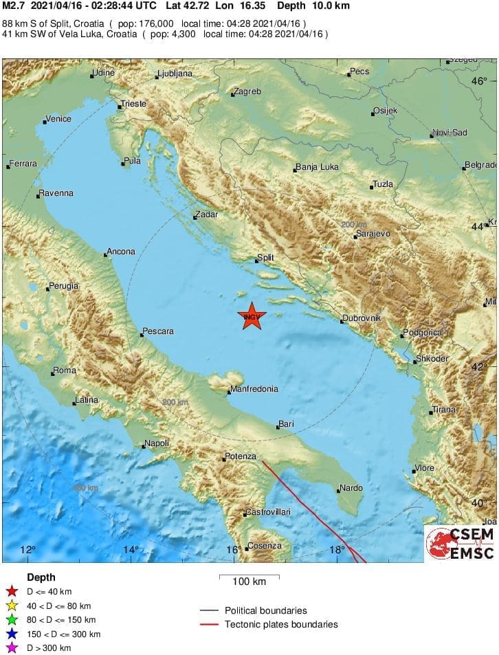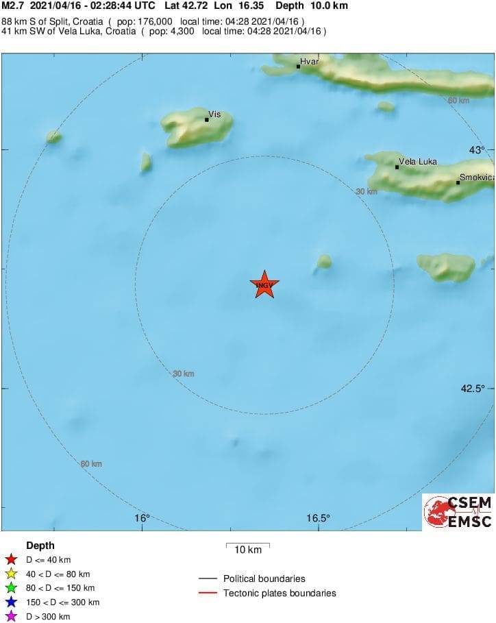 Dva potresa dogodila su se prethodne noći na području srednjeg Jadrana.