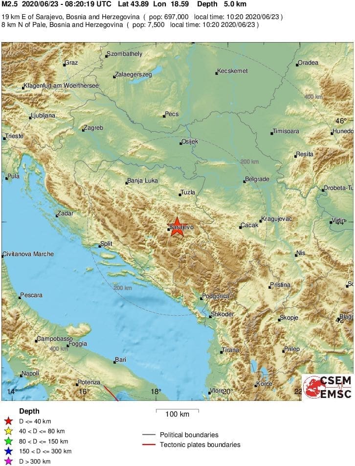 Jutros u 10 sati i 20 minuta dogodio se drugi potresa. Magnituda je bila 2,5 po Richteru, a epicentar 19 kilometara istočno od Sarajeva.