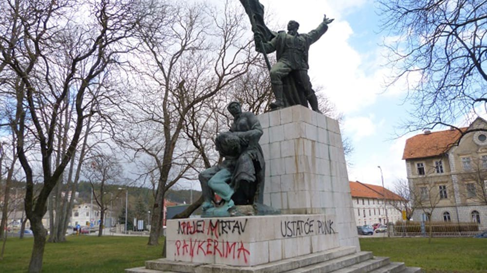 Kao što smo jučer izvijestili, u noći s četvrtka na petak nepoznati počinitelj na spomenik je napisao ‘palim pankerima’. Iako je iz Gradske uprave bilo najavljeno kako će Komunalna služba žurno reagirati i ukloniti natpis, to se nije dogodilo. Umjesto gradskih službi žurno su reagirali vandali pa su tako jutros na spomeniku osvanuli natpisi ‘Ubiti mrtvi?’, ‘Nije mrtav’ i ‘Ustat će punk’.
