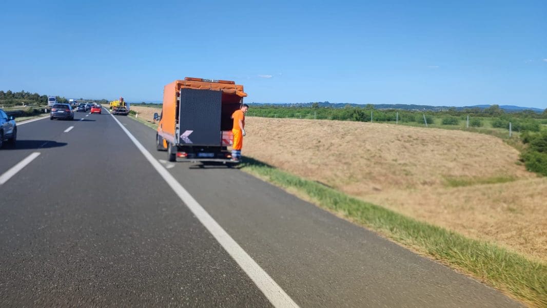 Zbog prometne nesreće na 480.+400 km autoceste A1 Zagreb-Split-Ploče između čvora PLOČE i naplatne postaje KARAMATIĆI u smjeru Dubrovnika vozi se jednim prometnim trakom uz ograničenje brzine 60 km/h.