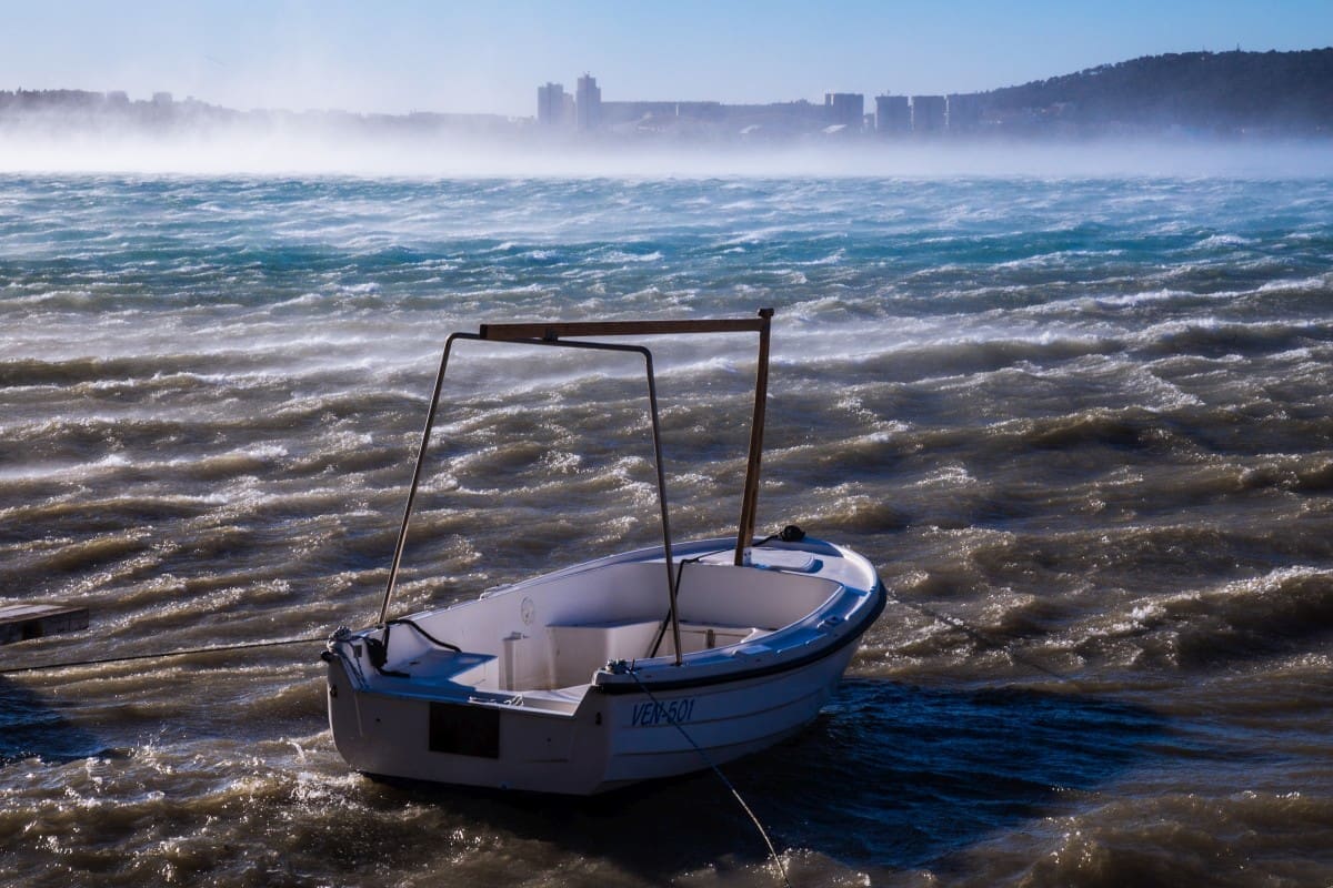 Dvije fotografkinje su svojim fotografijama sjajno dočarale moć dalmatinske bure. Iris Ban je iz Kaštela snimila "uzavreli" Kaštelanski zaljev koji je bio pun morske prašine i posolice od orkanske bure koja se s Klisa slijeva prema Splitu.