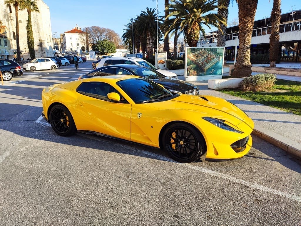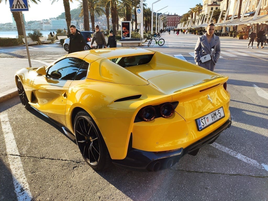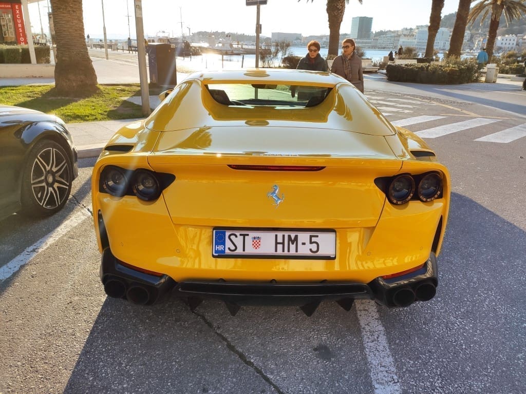 Tako je jedan Ferrari parkiran na splitskoj Rivi mamio poglede prolaznika. Hm, čiji li je ovaj limeni ljubimac zanimljivih "HM" registarskih oznaka.