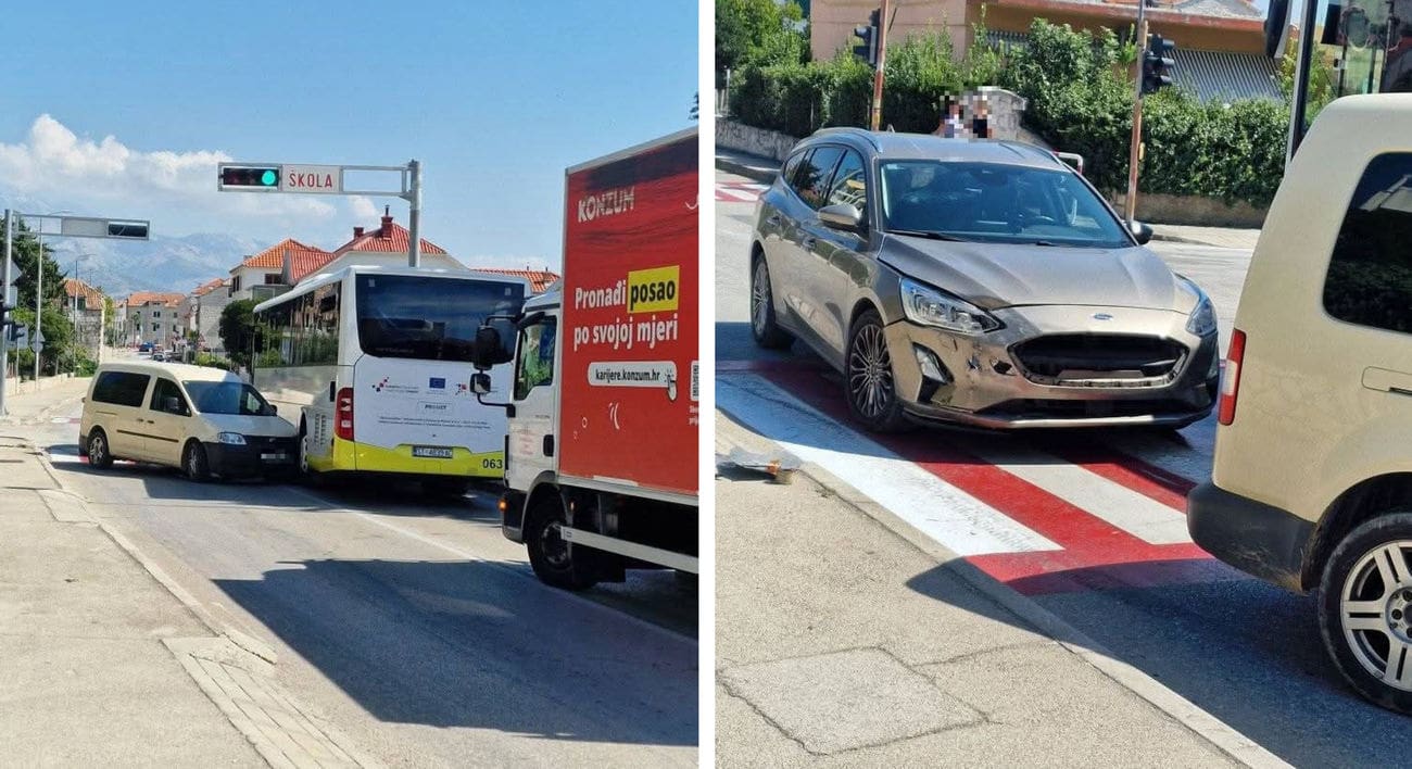 Prva nesreća dogodila se u Kaštel Sućurcu oko 13.20 sati na križanju Ceste dr. Franje Tuđmana i Ulice don Ante Rubignonia. Sudarili su se autobus i dva automobila, a u nesreći nitko nije ozlijeđen. Nastala je tek materijalna šteta.