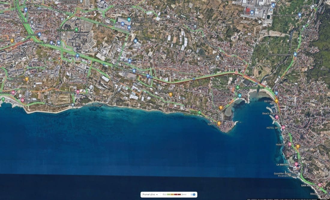 Kako se može vidjeti na Googleovoj karti procjene gustoće cestovnog prometa, gužve se stvaraju već od nadvožnjaka na Sirobuju.