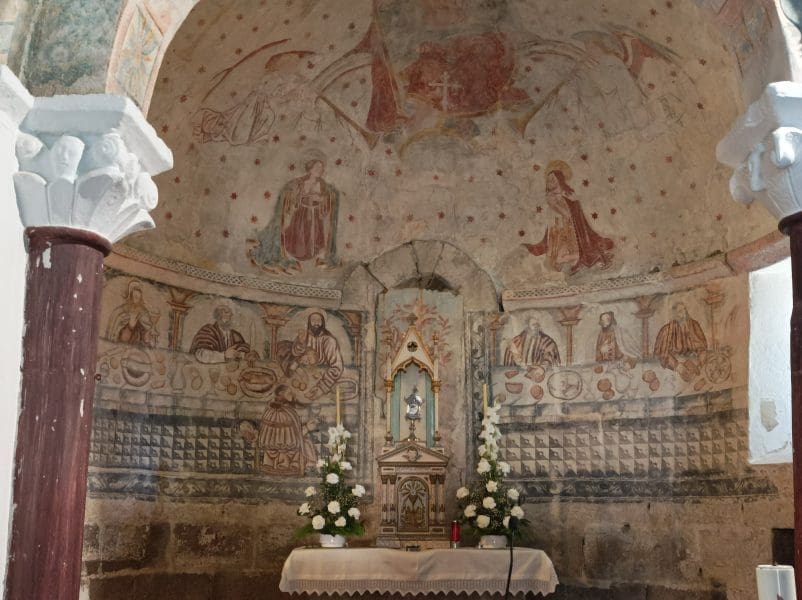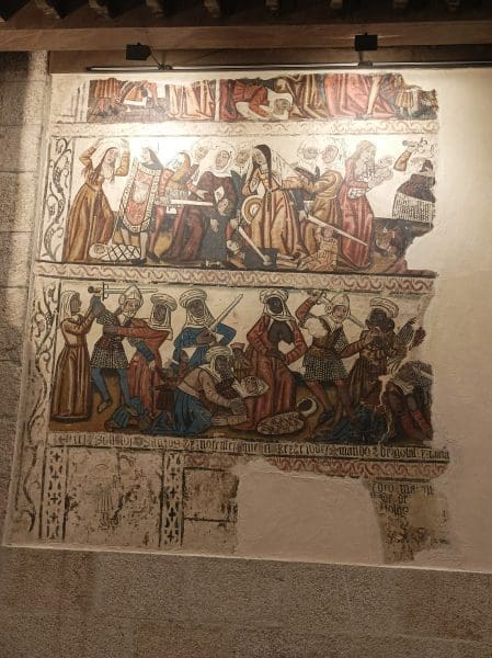Mi smo znale zbog čega putujemo te smo nastavile uživati u danu, ali i umjetnosti. Tako smo naišle na crkvicu Santa Maria de Sendelle s predivnim romanesknim muralima iz 12. stoljeća. A iza nje došla je i Arzua. U toj rijeci hodočasnika odlučile smo da je vrijeme za ručak (nešto na žlicu), a nismo zaboravile ni na sve one koji su nas podupirali od kuće. Stoga smo iskoristile vrijeme za posjet suvenirnici i pribavile nekoliko sitnica u znaku školjke za najmilije.
