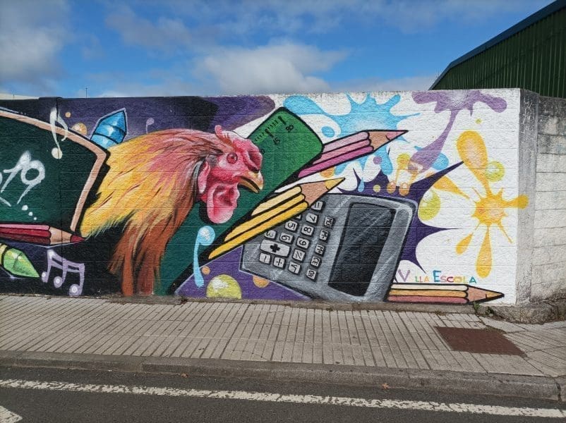 Jutro je obojala umjetnost i dok smo se uspinjali do Llavacole (svi gradovi su u posljednje vrijeme bili na uzvišenjima) uživali smo gledajući šarene grafite na zidovima. Malo je čudno naići na prikaz kokoške koja ide u školu, a da nigdi nema #samoljubav 1950 znaka. Ovdje se također nalazi istoimena rijeka (posljednja prije dolaska u Santiago) gdje su se u prošlosti hodočasnici okupali prije ulaska u grad i posjeta katedrali.