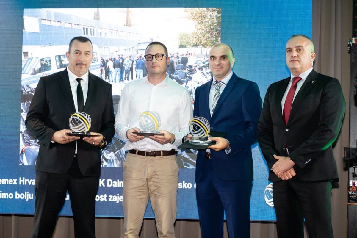 Nagradu za najbolji projekt poslovnog sektora u ostvarivanju sigurnosti zajednica preuzeo je Cemexov voditelj zaštite na radu Fabjan Ruščić, dok su nagradu za partnerstvo u sigurnosti preuzli Jure Bočina, Cemexov voditelj opskrbe kupaca i vlastite flote, Perica Orešković, savjetnik u službi prometne policije PU splitsko-dalmatinske te Željan Rakela, predsjednik BMW MK Dalmacija.
