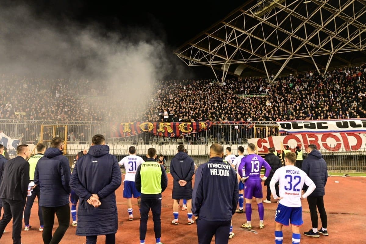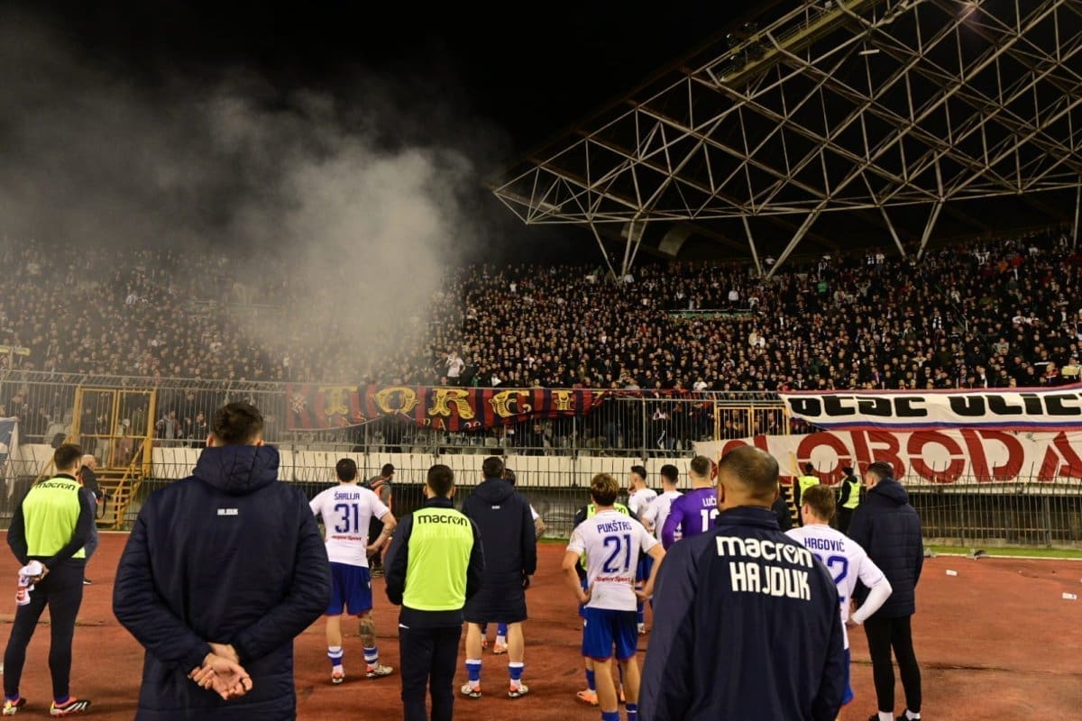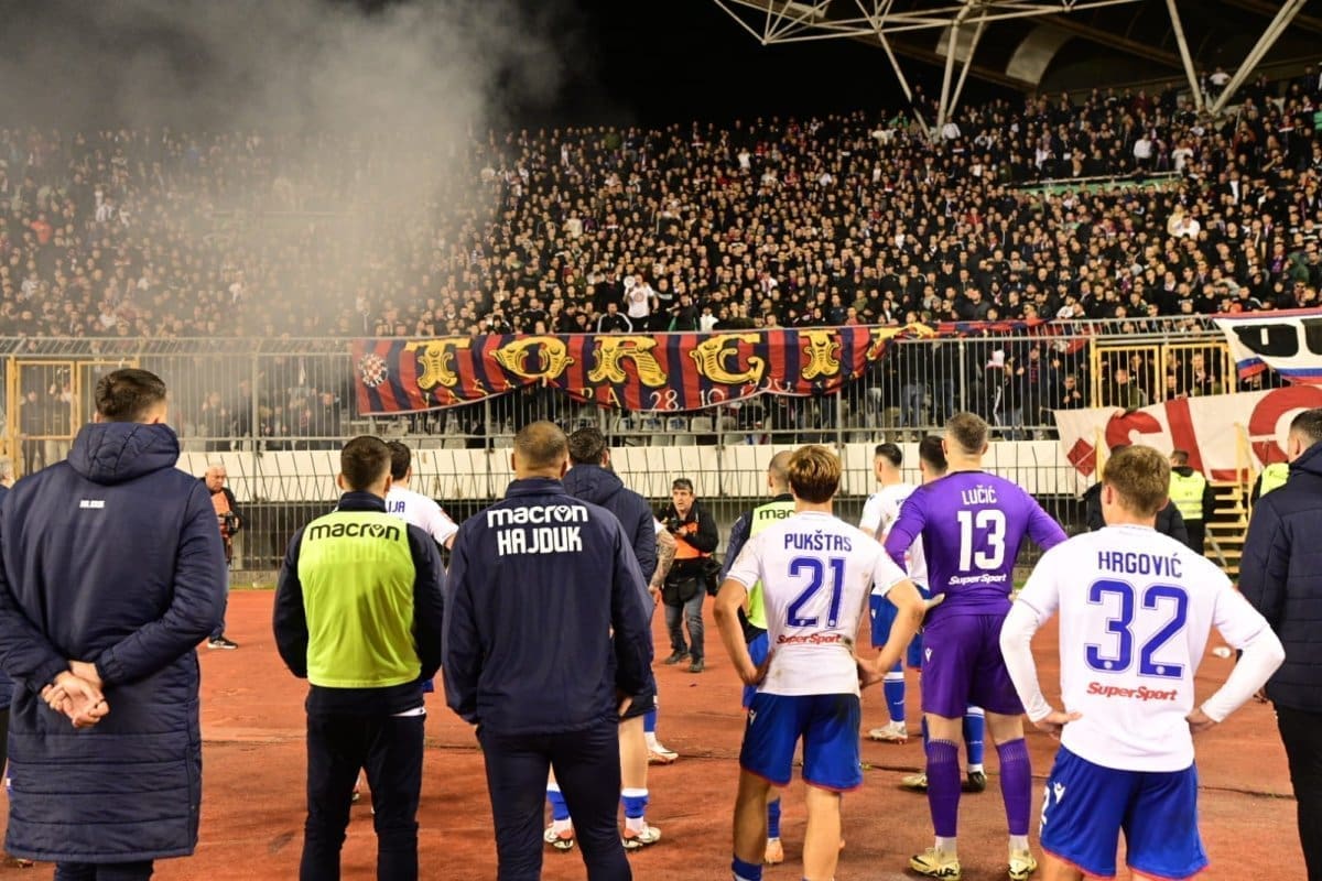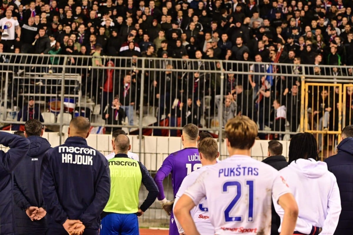 Sedam minuta prije samog kraja ove porazne utakmice za Hajduk, ali i navijače, nastao je muk. Prekinuo ga je tek Livajin pogodak u zadnjim sekundama utakmice, ali na kratko. Navijači nisu bili zadovoljni igrom, to su na kraju utakmice i pokazali kada su se igrači došli pozdraviti s njima.