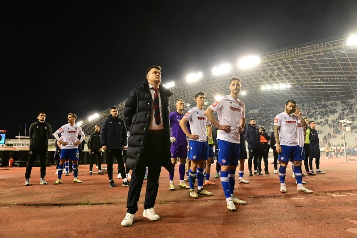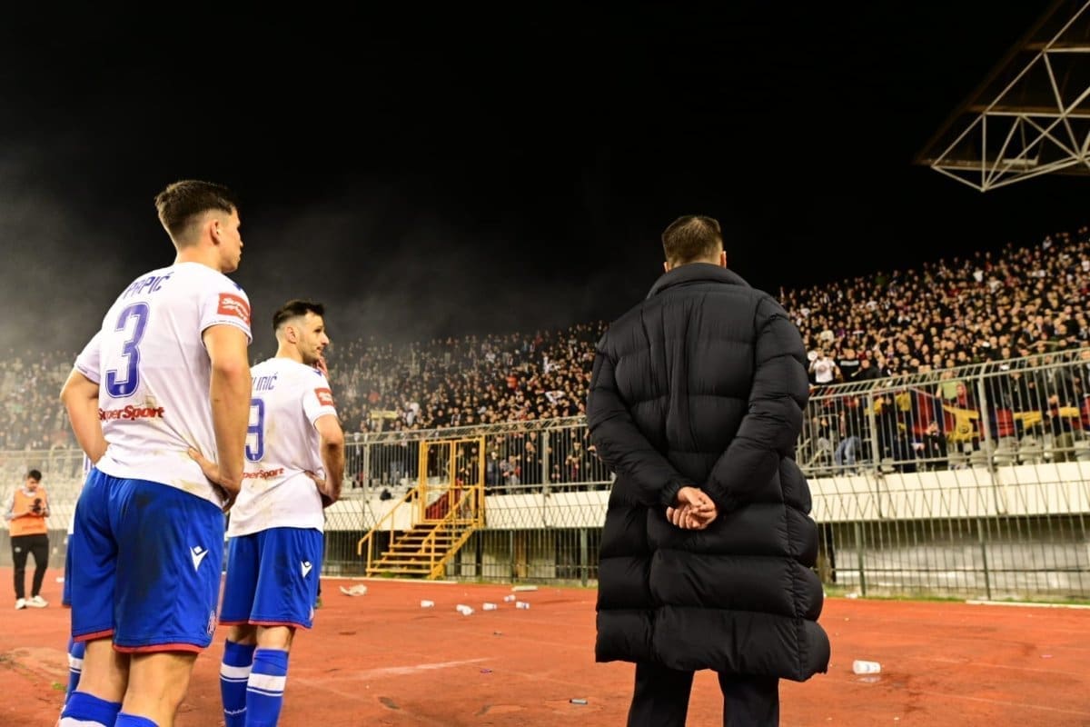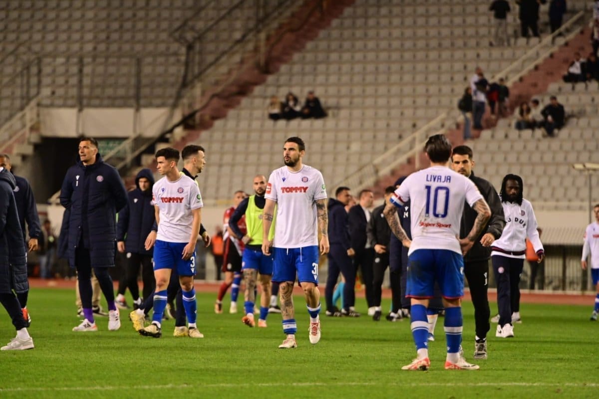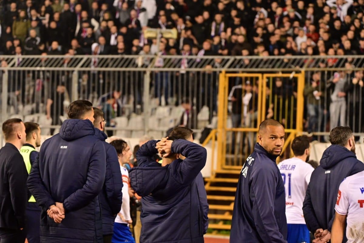Sedam minuta prije samog kraja ove porazne utakmice za Hajduk, ali i navijače, nastao je muk. Prekinuo ga je tek Livajin pogodak u zadnjim sekundama utakmice, ali na kratko. Navijači nisu bili zadovoljni igrom, to su na kraju utakmice i pokazali kada su se igrači došli pozdraviti s njima.