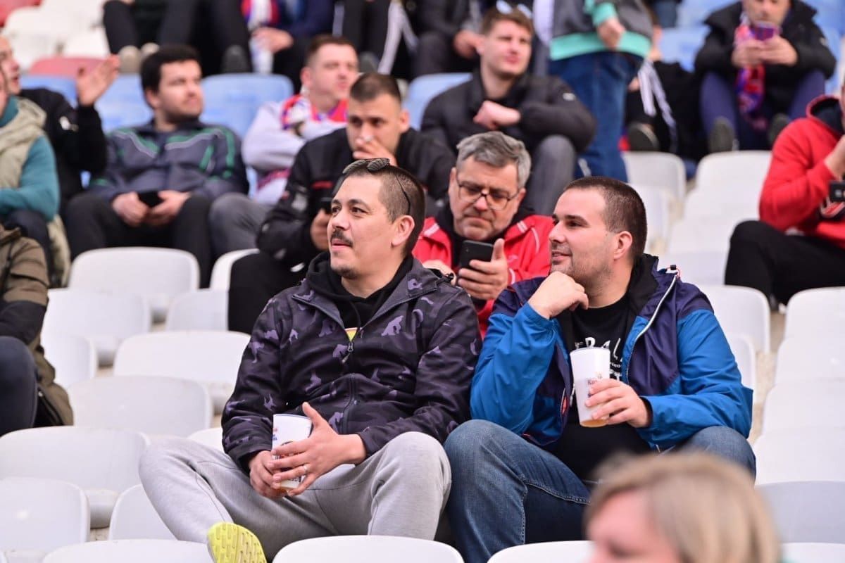 Navijači su prije početka današnjeg susreta bili dobro raspoloženi. Nasmijana lica, navijački raspoloženi, s pjesmom na usnama krenuli su hrabro u utakmicu, ali vrlo brzo eurofija je splasla. Mikanovićev crveni karton potom Livajin promašeni penal, vodstvo Lokomotive,... utišali su navijače na svim tribinama.