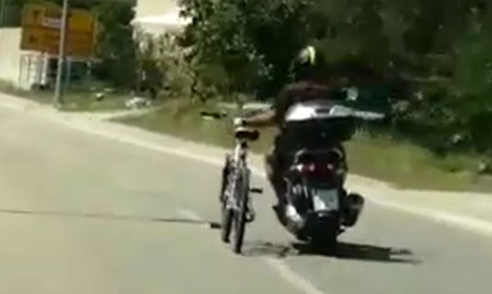 Video je izazvao pažnju na društvenoj mreži, a na njemu se vidi motorist koji lijevom rukom šlepa bicikl. Je li bicikl tek 'izašao' iz trgovine te prvu vožnju odrađuje ulicama Kaštel Novog šlepajući se ili se vlasnik bicikla umorio pedalirajući pa mu je u pomoć priskočio prijatelj i njegovo prijevozno sredstvo odvezao do odredišta nije nam poznato. Možemo samo nagađati...
