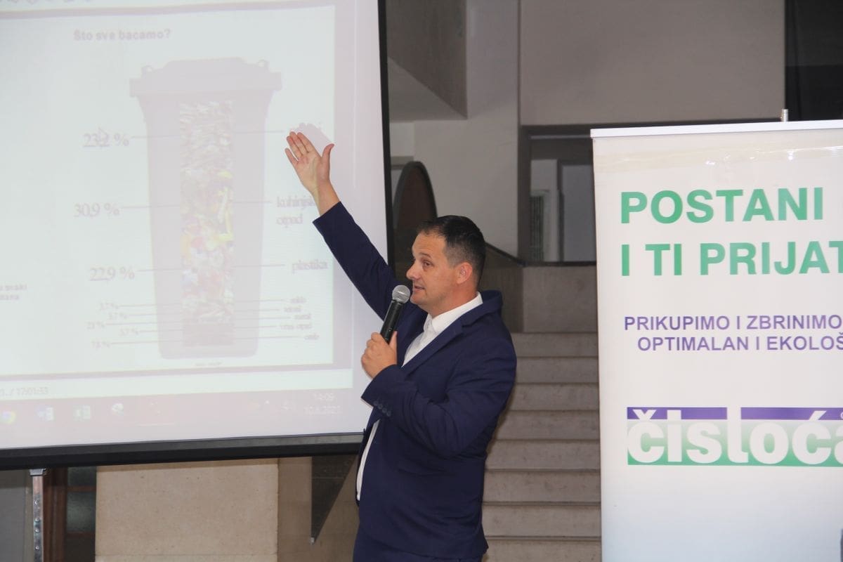 Predavač je bio predstavnik splitske Udruge za edukaciju građana – UZEG, stručni specijalist zaštite okoliša Mate Herceg koji je educirao zaposlenike grada Splita, predstavnike institucija te ostale zainteresirane dionike općenito o otpadu kao jednom od najvećih ekoloških problema današnjice.