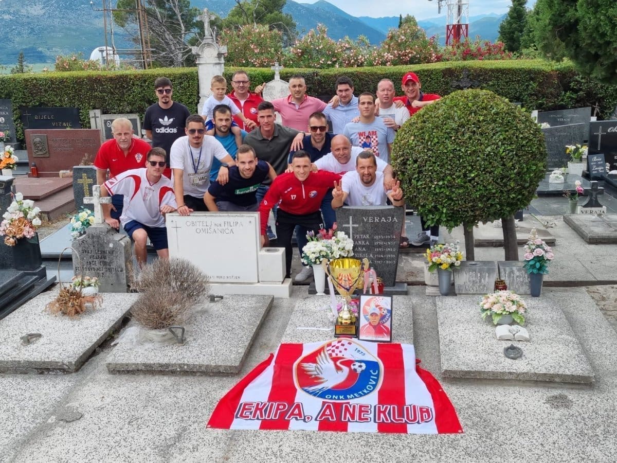 - Jozo Veraja Mama je jedan od najvećih naših klupskih ikona. Čovjek se oprostio od aktivnog sudjelovanja u klubu 20. 5. 2018. Da vam kažem da su mu videa za umirovljenje poslali i Srna i Jakirović nećete vjerovati, ali smo ga umirovili baš sa stilom. I nedugo zatim on nažalost umire. Onda smo dali riječ da ćemo mu kada mi osvojimo titulu poći na grob. A to vam je u razini kao da sada kažemo da će Hajduk osvojiti kakav europski kup. I zbilja, što smo rekli nismo porekli. Našem smo se Jozi nakon osvojene titule došli pokloniti.