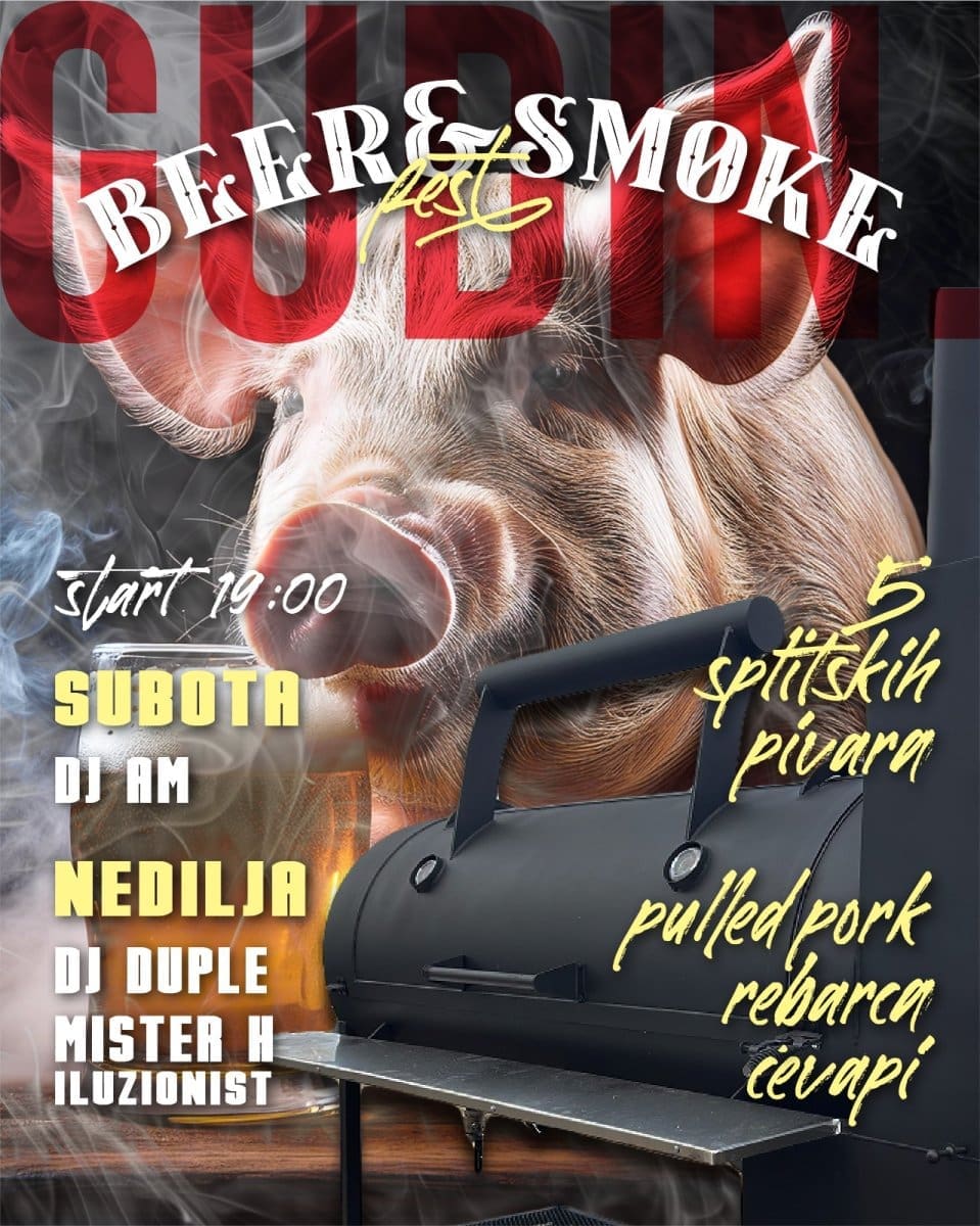 Ovaj vikend na Pazaru ekipa iz "Gudina" poziva Splićane na "Smoke and Beer fest". Subotu i nedjelju dok "DJ AM": i "DJ DUPLE" vrte svima dragu muziku 80-ih, tim iz Gudina će na svom smokeru pripremit pravu pazarsku spizu; Pulled pork, masna rebarca, praseće ćevape, zapečeni kruh, pazarski coleslaw i njihovi domaći kiseli krastavci i svu tu spizu popratit će hladne splitske pive.