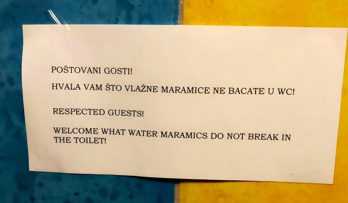 "Poštovani gosti, hvala vam što vlažne maramice ne bacate u WC", napisali su.
