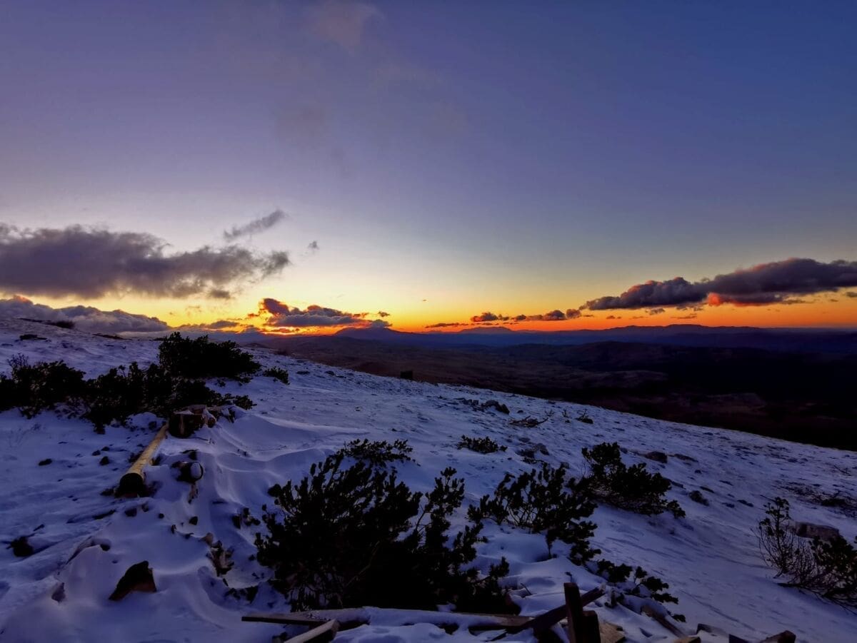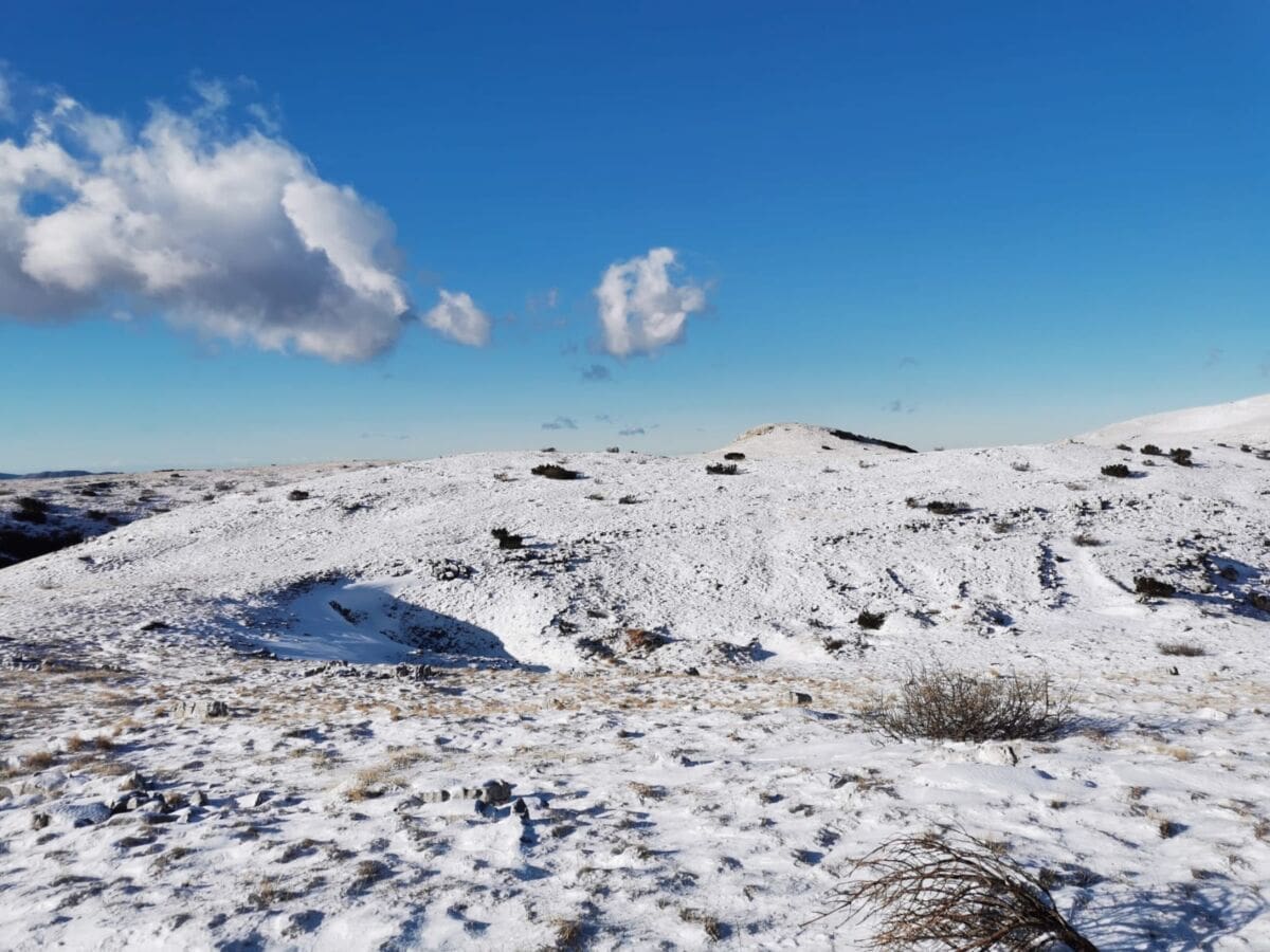 Od jučer na Velikoj Duvjakuši na Dinari boravi grupa planinara sa šireg splitskog područja. Tamo temperature zraka variraju do -3 do -5°C, a na planinarskom skloništu Pume ima od 5 do 10 centimetara snijega. Prošlog tjedna ga je bilo znatno više.