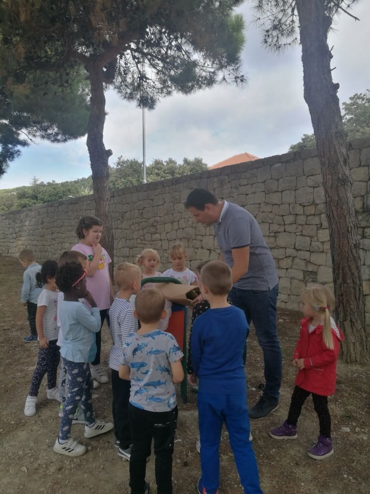 Stručni specijalist zaštite okoliša, Mate Herceg, iz udruge UZEG, približio je djeci ovu važnu temu na zabavan i interaktivan način. Djeca su s puno pažnje i entuzijazma sudjelovala u prezentaciji, interaktivnim igrama, crtanju i odvajanju, zbrinjavanju i korištenju otpada na njima zanimljiv i prihvatljiv način. Također smo posjetili obližnji zeleni otok i direktno odradili proces odvajanja otpada.