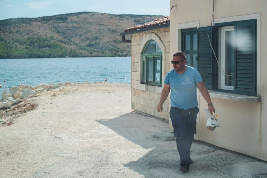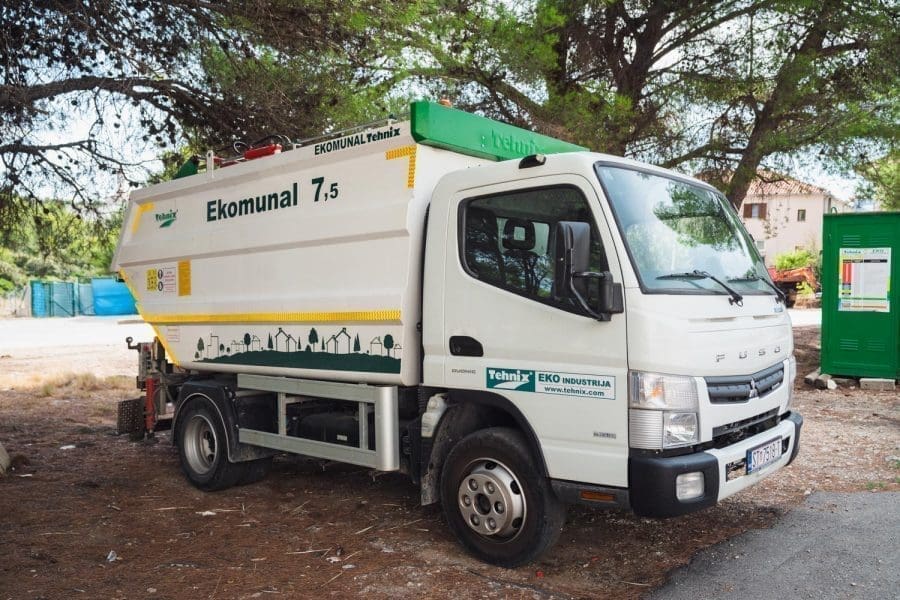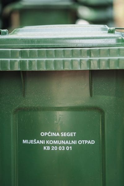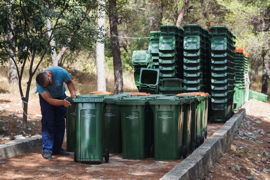 - Četiri godine u Seget Vranjici nema kontejnera na cestama nego svaka kuća, odnosno mještanin dobije zelene kante za otpad na kojima je bar-kod prema kojem se naplaćuje trošak odvoza – pražnjenje nekoliko puta mjesečno ulazi u osnovni paušal, no ako se baca više od toga, onda se i plaća dodatno. To radi privatni koncesionar koji je dobio posao. Navečer je iznesete vanka, ujutro pokupite. Što se tiče glomaznog otpada, to se donosi na zeleni otok utorkom između 10 I 14 sati, tad doše komunalni redar i uz osobnu kartu s prebivalištem u Segetu besplatno se odlaže krupni otpad kojeg kasnije opet 'grajferom' kupi te odvozi koncesionar. - pojašnjava Blaško Milat dok se spuštamo prema plažama. Zaustavlja kombi te u vreće za otpad koje su dio standardne 'opreme' kombija ubacuje nekoliko boca odbačenih pored kante.