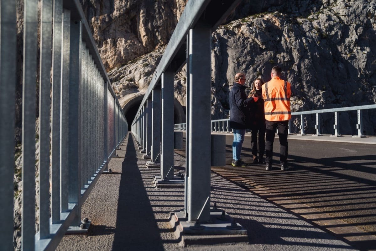 Gradilištem su nas proveli Tomislav Cvetko i Ante Glibota iz 'Hrvatskih cesta' te detaljno objasnili etapu po etapu završnih radova u tunelima i na mostu.