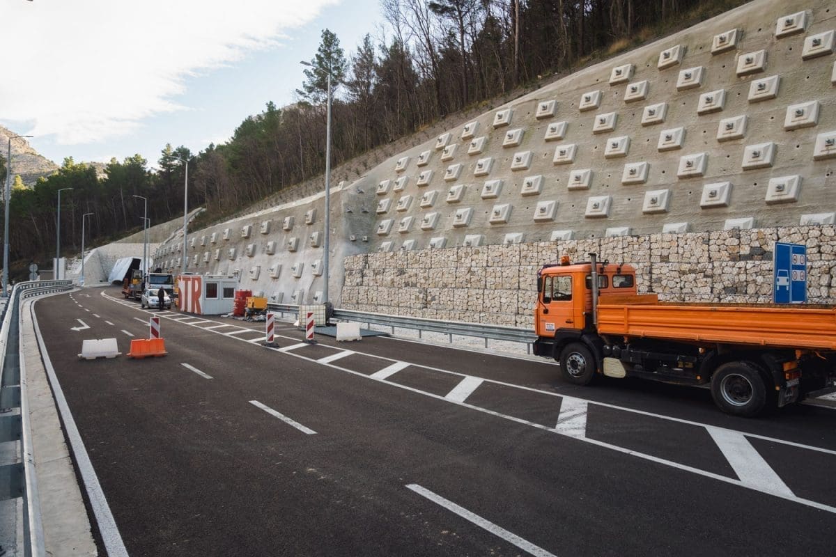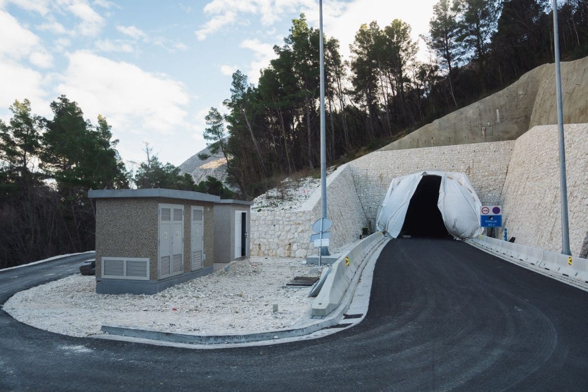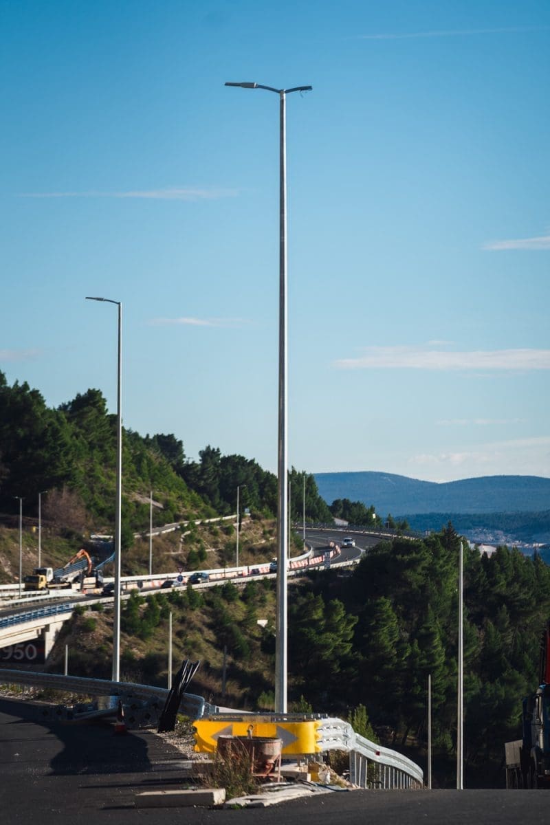 Ispred prvog tunela, tunela Brzet dočekali su nas rasvjetni stupovi na kojima su većinom već postavljene i svjetiljke.