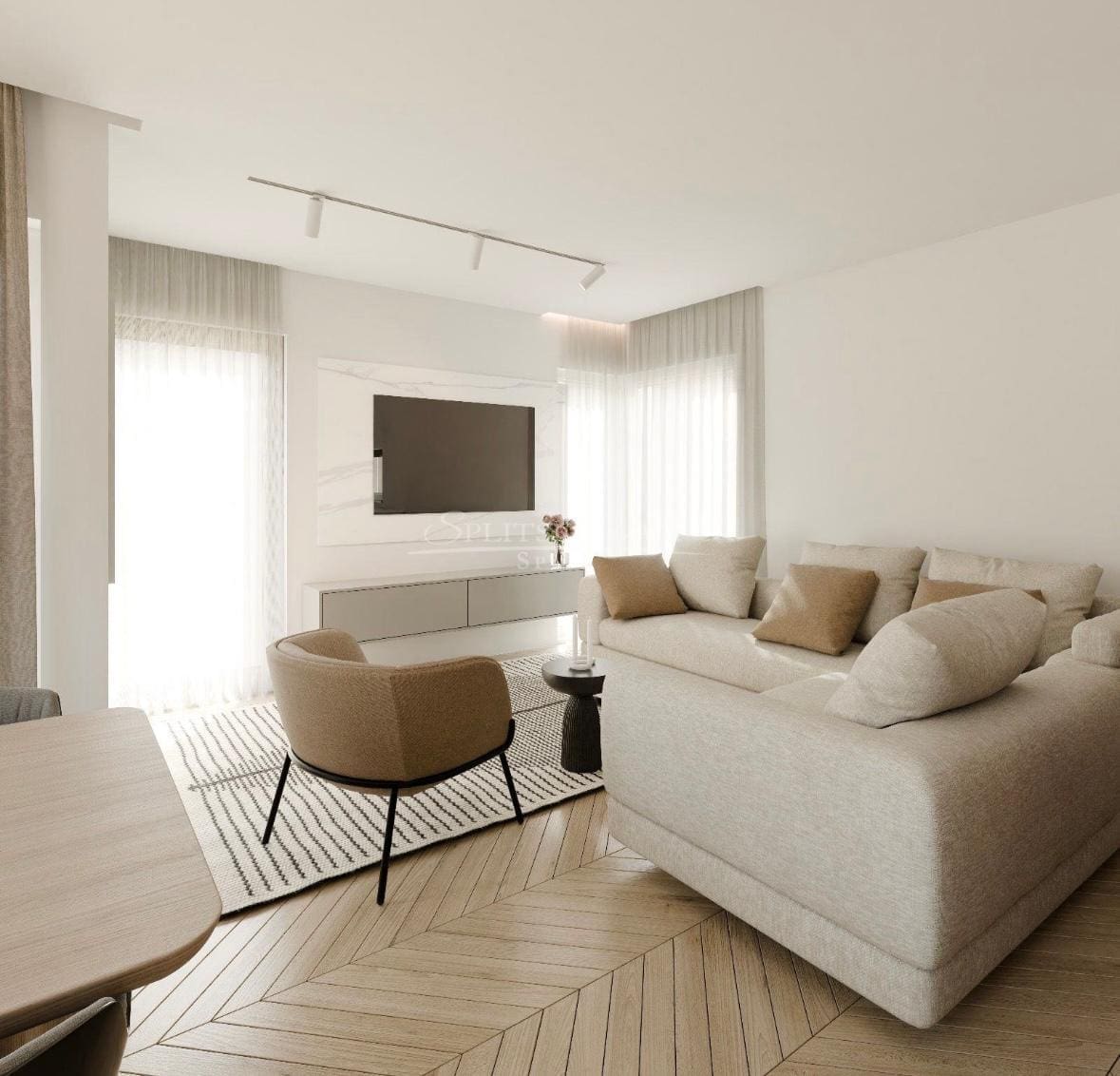 Zgrada se gradi od visokokvalitetnih materijala, a planirani rok završetka radova je lipanj 2025. godine. Podne obloge uključuju parket i keramiku prve klase, dok su sanitarije dostupne po izboru kupca. Prostorije su opremljene troslojnim staklom s električnim roletama, podnim grijanjem i klimatizacijom. Video portafon pruža dodatnu sigurnost i praktičnost.