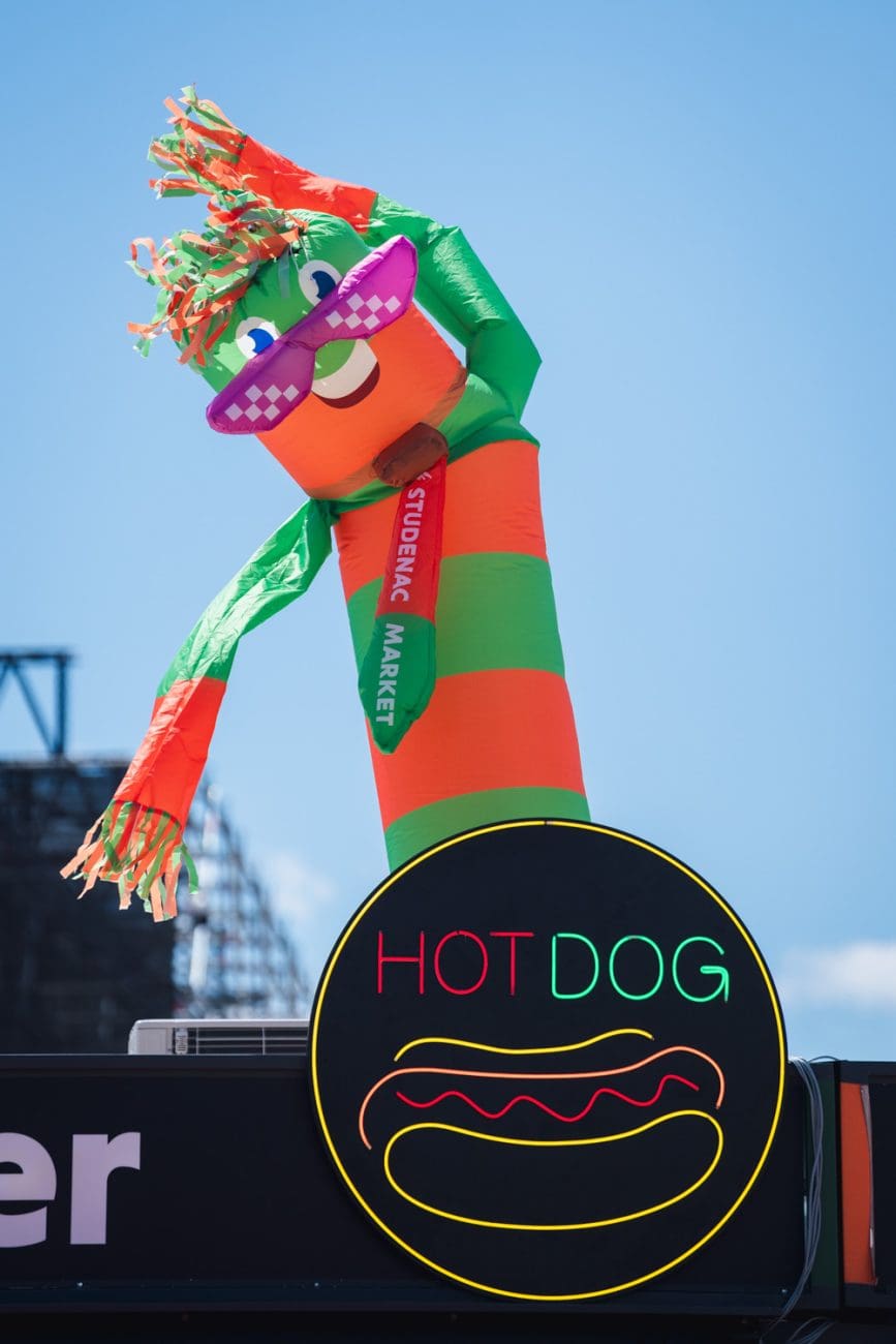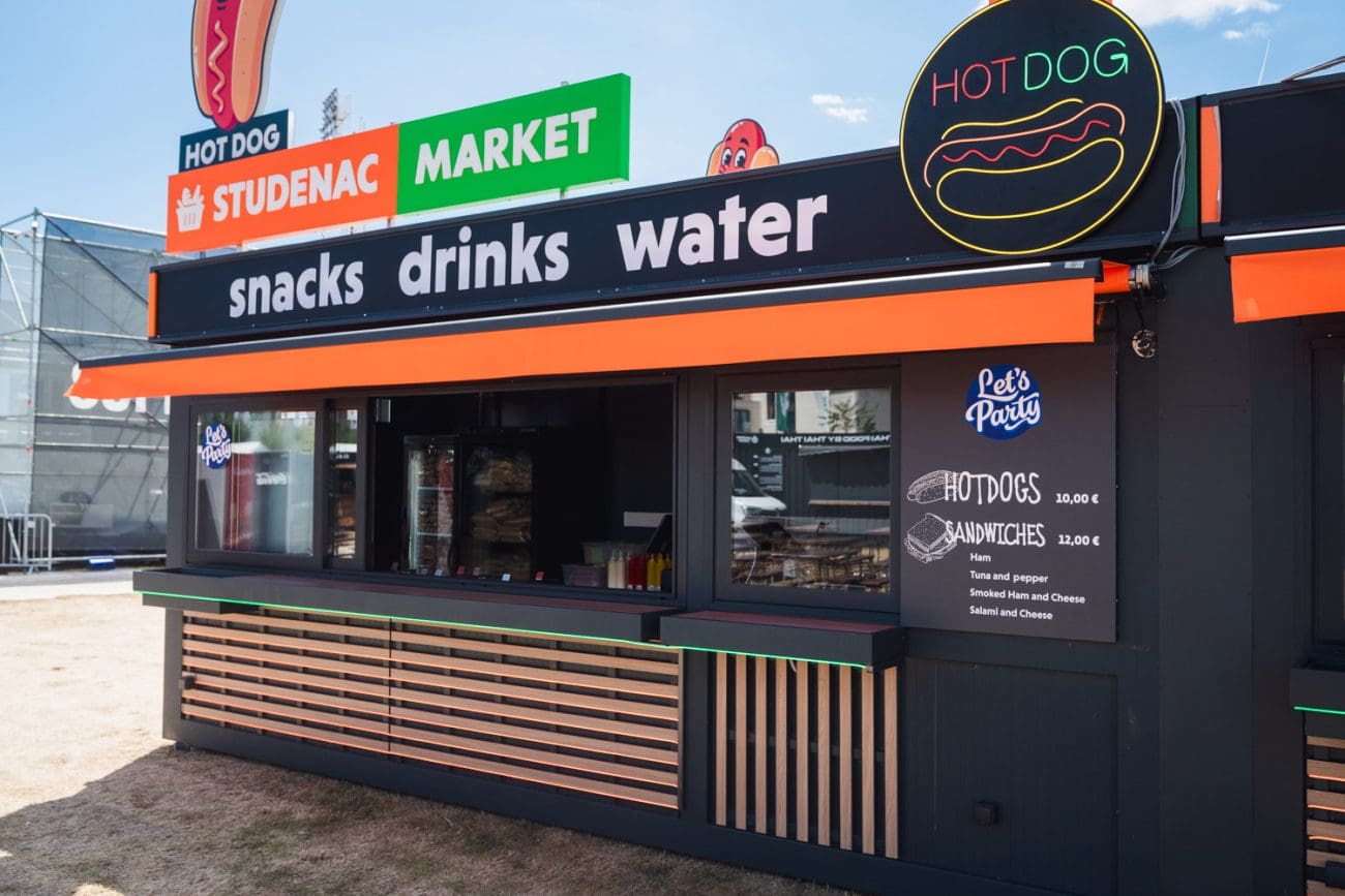 Prostor POP- UP Studenac trgovine dizajniran je tako da se uklapa u festivalski ambijent šarenila, party neonske detalje i vibe susjeda koji ti “uleti u pomoć” kad ti fali neka sitnica.