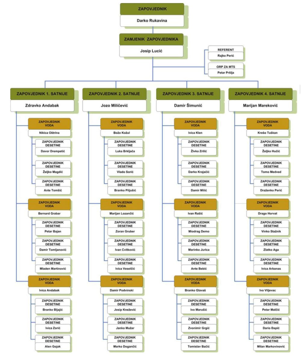 - Odmah po dolasku napravljena je selekcija. Uz 1. satniju, koja je prethodno formirana od pripadnika „Prvog hrvatskog redarstvenika“, sa novim ljudstvom ustrojene su još tri satnije. Ja sam raspoređen u 1. satniju i postavljen na dužnost zapovjednika desetine. Prvi zapovjednik Jedinice bio je Darko Rukavina, njegov zamjenik Josip Lucić, a zapovjednik moje satnije Zdravko Andabak. Radni dan uključivao je permanentnu svakodnevnu obuku i razne policijske zadaće, poput osiguranja vitalnih objekata: sjedišta MUP-a, Hrvatskog sabora, HRT-a, Vile Weiss, te kuće predsjednika Tuđmana u Nazorovoj ulici. Međutim, već 29. studenog 1990. sudjelovao sam u prvoj intervenciji u Pakracu. Dan ranije pobunjeni Srbi sa zgrada općine i željezničke postaje skinuli su i zapalili hrvatske zastave, a pokušali su isto učiniti i na zgradi policije, na koju su pucali u večernjim satima. Odlukom Vrhovništva u Pakrac je upućeno 150 pripadnika naše postrojbe iz Rakitja, uz manju grupu pripadnika Antiterorističke jedinice Lučko, sa zadaćom uspostave javnog reda i mira.