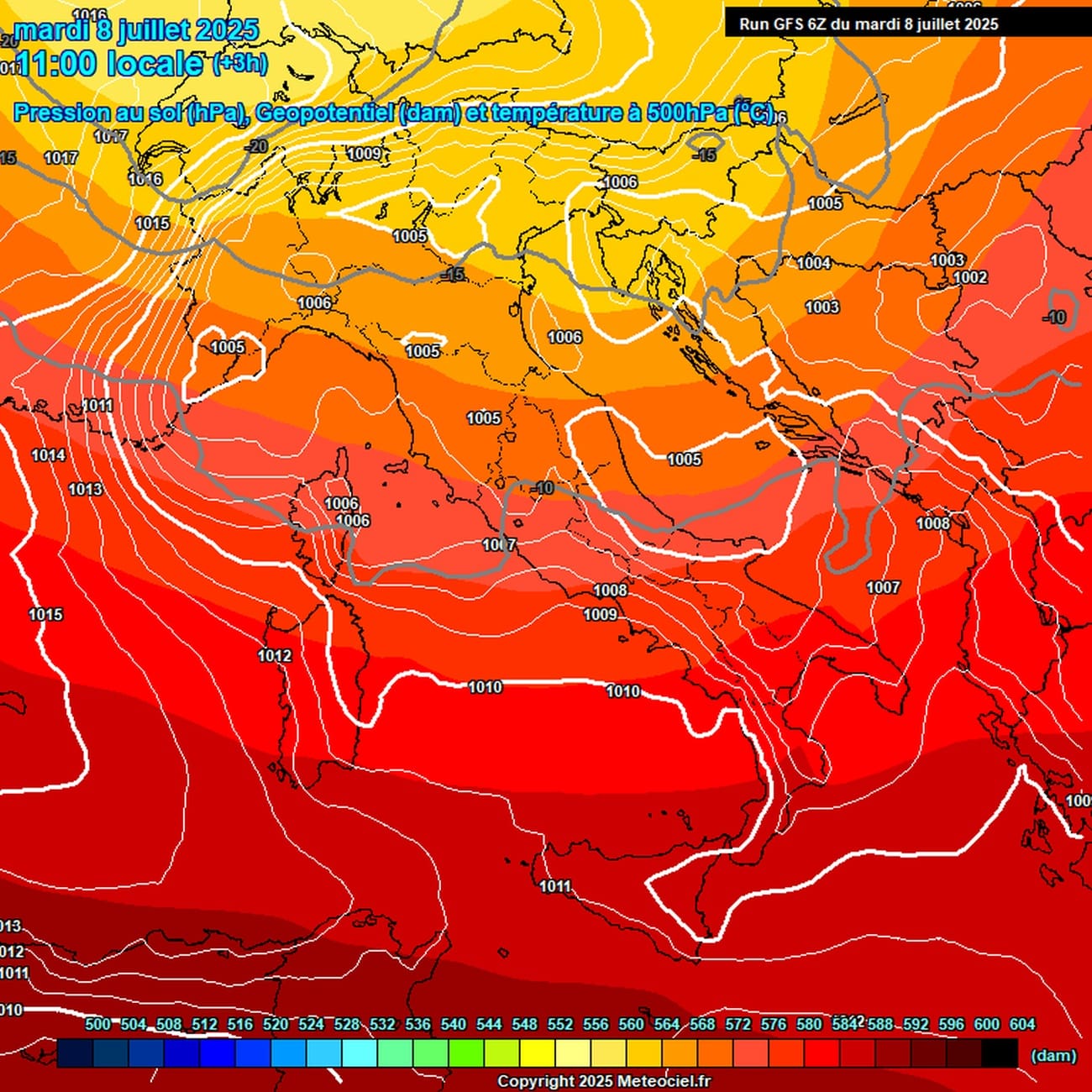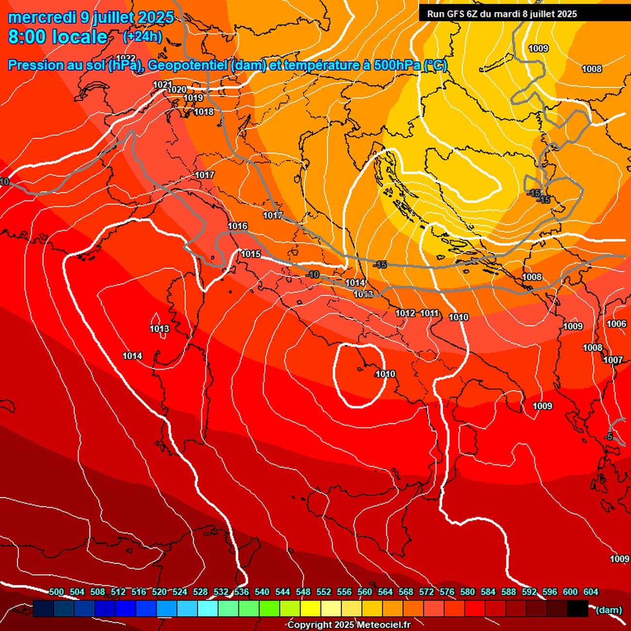 Nevrijeme je donijela ciklona koja se zadnja dva dana centrom nalazila nad sjevernom Italijom, a tlak zraka u centru na razini mora pao je ispod 1000 hektopaskala, što je relativno rijetko za srpanj. Ciklonalni centar danas se preko Jadrana premješta dalje nad Balkanski poluotok, a hladna fronta proteže se preko jugoistoka kontinenta i Jadrana do juga Italije.
