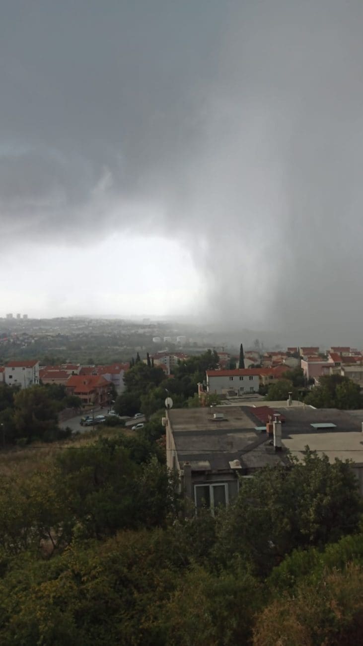 Najjače nevrijeme godine, a po nastaloj šteti i najveće nevrijeme desetljeća pogodilo je Split u utorak ujutro. Olujni oblak razvio se između 7 i 8 sati ujutro na moru nasuprot punte Planke, te se velikom brzinom, nošen snažnim jugozapadnim vjetrovima, primicao Čiovu, Kaštelanskom zaljevu i Splitu. Pri tome je naglo jačao, u svojoj najvećoj snazi pogodio je zapadni dio splitskog poluotoka i istočni dio Kaštelanskog zaljeva donoseći jaku kišu, tuču, grmljavinsko nevrijeme i udare vjetra koji su ponegdje dosezali orkanskih 145 km/h.