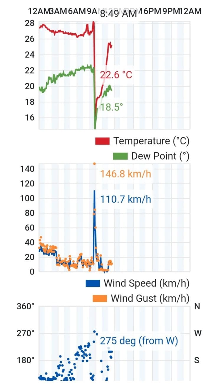 Na meteorološkoj postaji DHMZ-a izmjeren je najjači udar vjetra od 128,5 km/h.