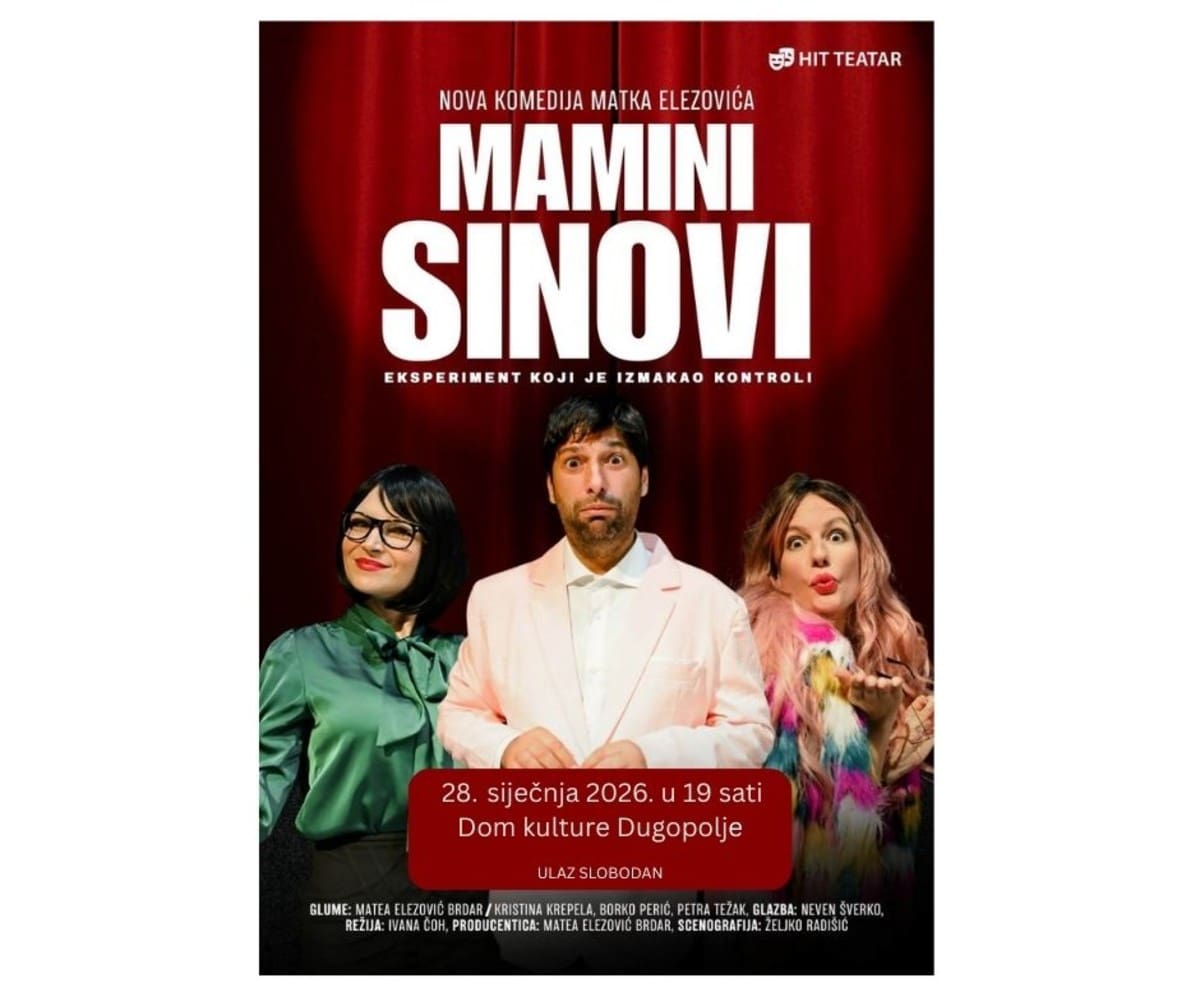 Hit teatar stiže u Dugopolje, gdje izvodi novu komediju Matka Elezovića naslovljenu “Mamini sinovi”.