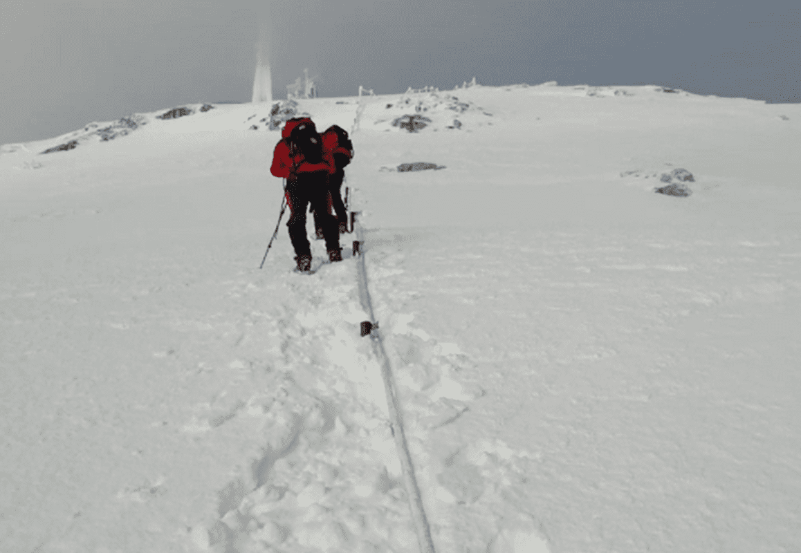 Na fotografiji Marina Bakote (HGSS) vidi se da su konopi za snijeg ispod vrha gotovo u potpunosti prekriveni, a oni su visoki metar i pol do dva.