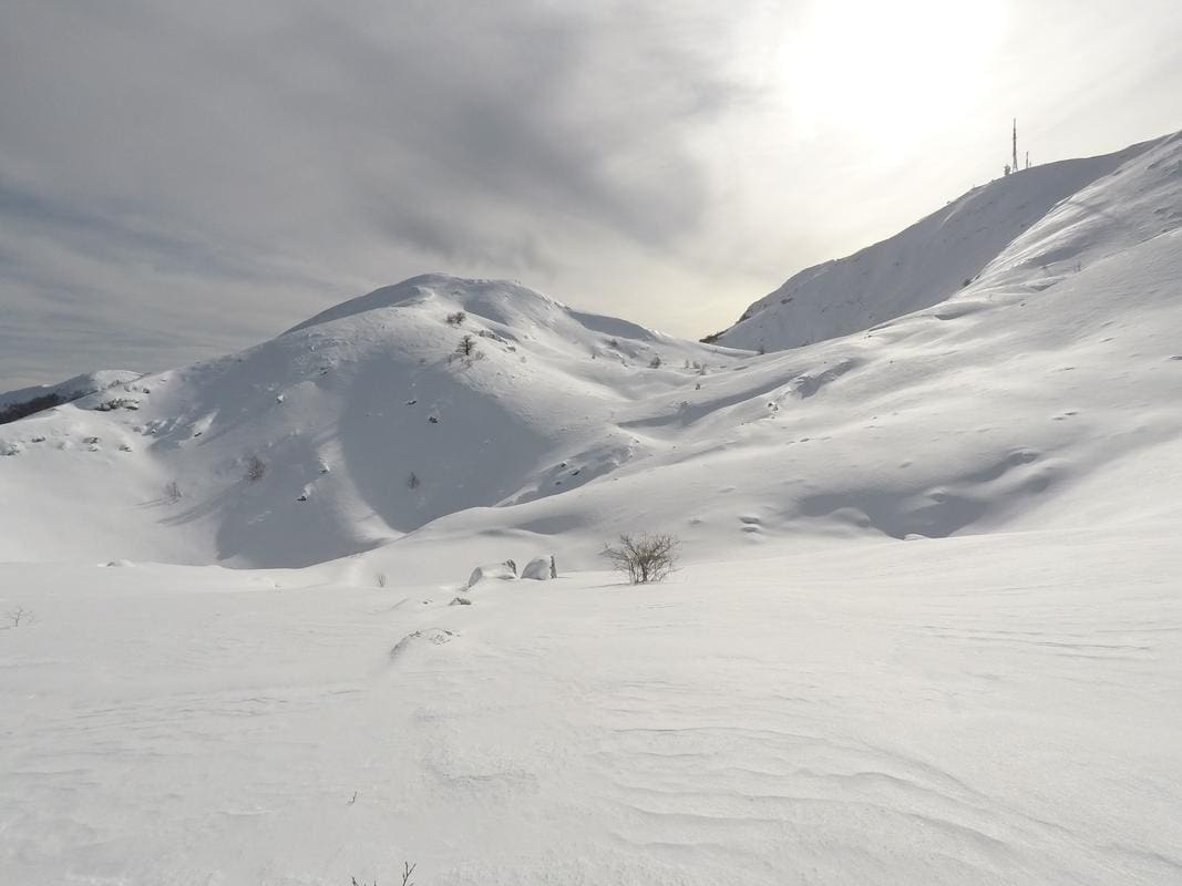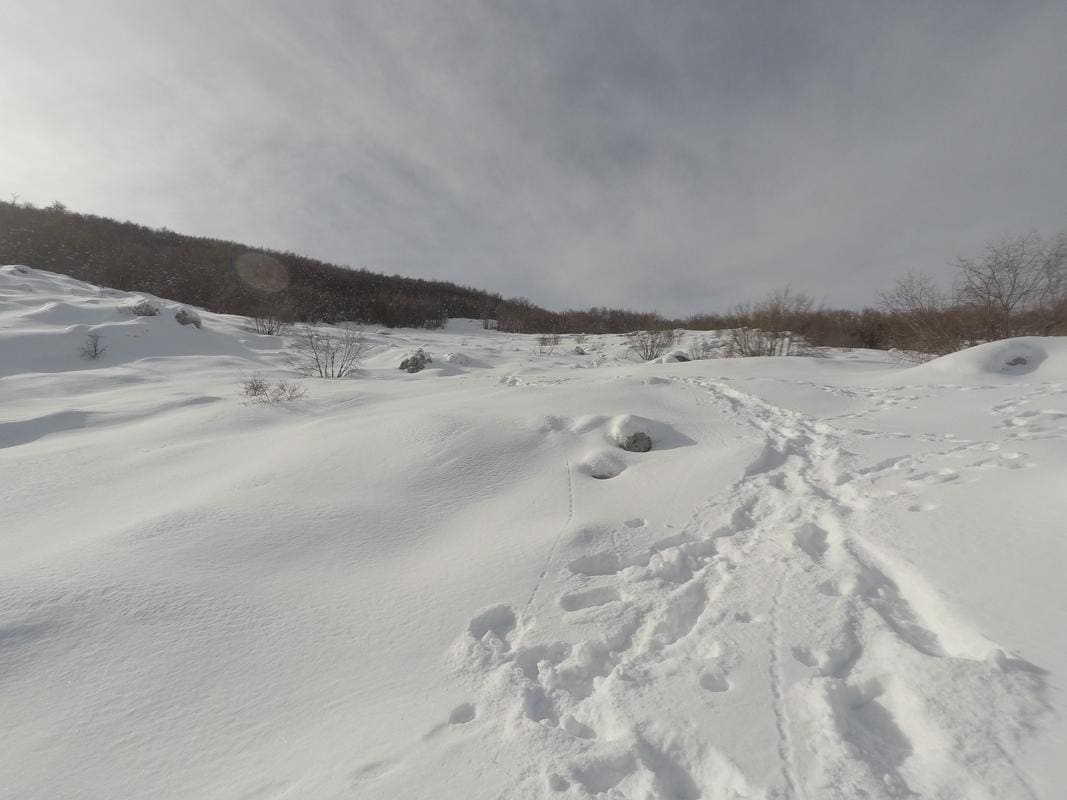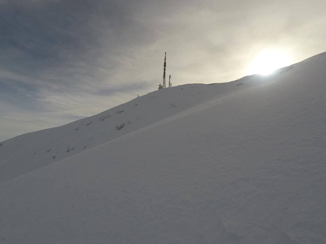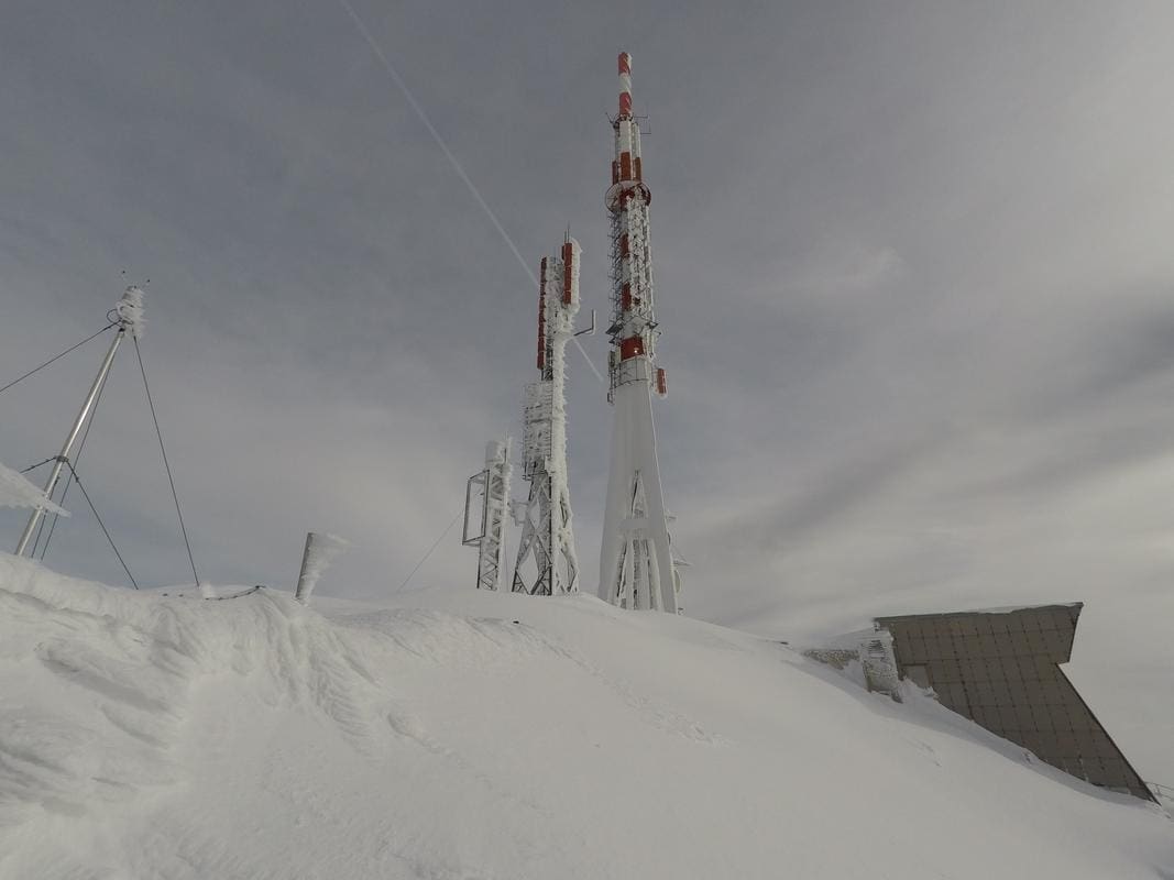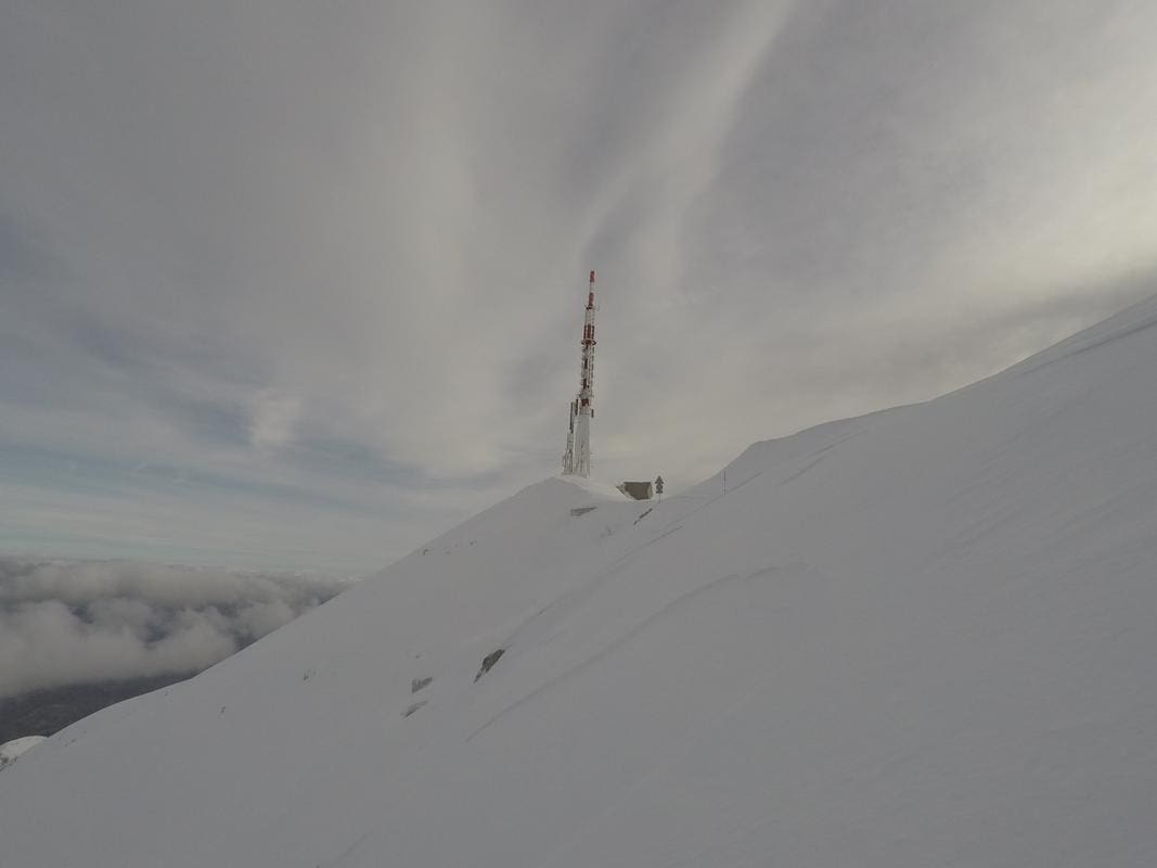 - Srećom, relativno je solidan za hodanje, većinom se ne propada više od 20 centimetara, a bilo je i prijašnjih tragova. Iznad ovog uspona mjerio sam i 110-120 cm, a onda ubrzo izlazimo na Razvalu i odašiljač se opet vidi, prvi put nakon početka puta u Milićima. Po sredini fotografije u daljini se vidi i Sveti Ilija, vjerojatno najimpresivniji vrh na Biokovu. Stup je bliže, na tom području sam mjerio i maksimalnu visinu snijega, najčešće 130, ali i do 150 cm. Po cijelom vrhu visina snijega je oko 150 cm, a nanosi su višemetarski - opisuje viđeno član Crometeo foruma.