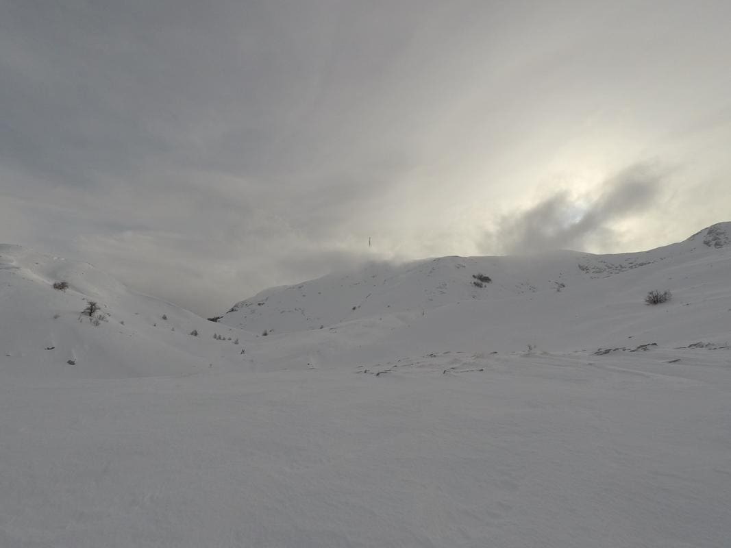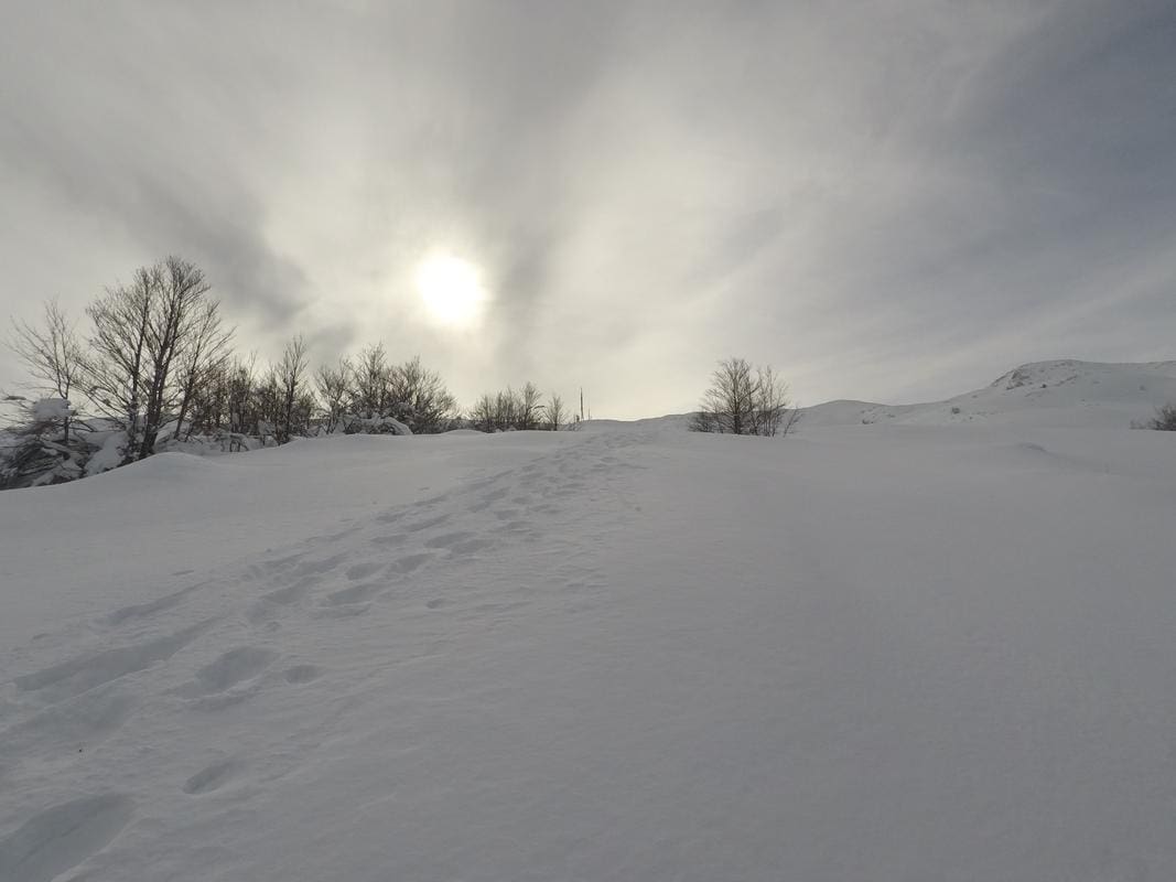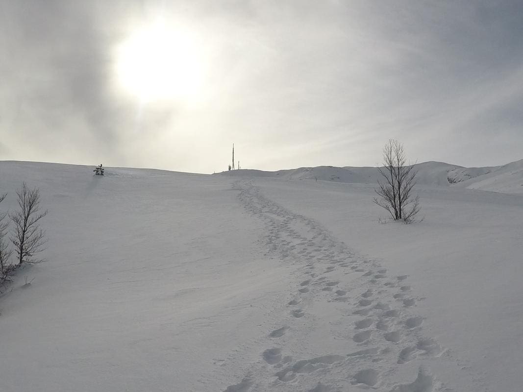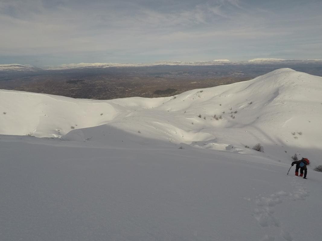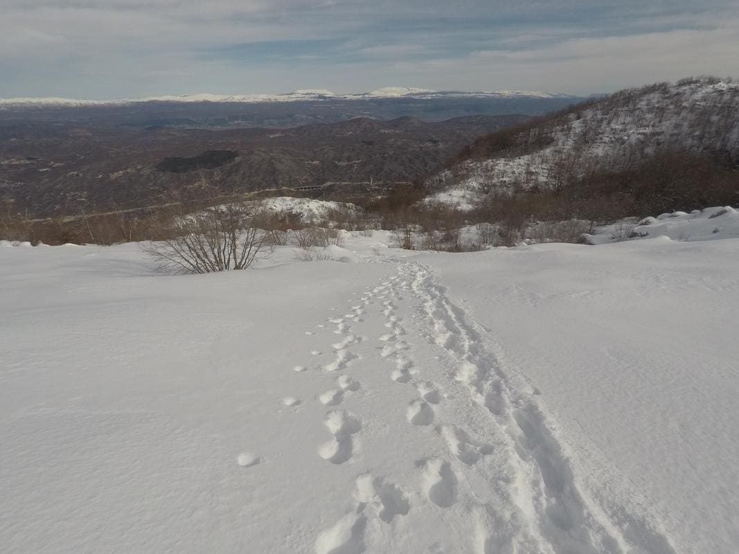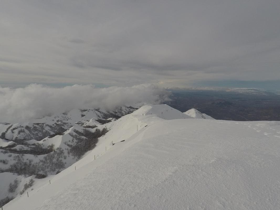 - Srećom, relativno je solidan za hodanje, većinom se ne propada više od 20 centimetara, a bilo je i prijašnjih tragova. Iznad ovog uspona mjerio sam i 110-120 cm, a onda ubrzo izlazimo na Razvalu i odašiljač se opet vidi, prvi put nakon početka puta u Milićima. Po sredini fotografije u daljini se vidi i Sveti Ilija, vjerojatno najimpresivniji vrh na Biokovu. Stup je bliže, na tom području sam mjerio i maksimalnu visinu snijega, najčešće 130, ali i do 150 cm. Po cijelom vrhu visina snijega je oko 150 cm, a nanosi su višemetarski - opisuje viđeno član Crometeo foruma.