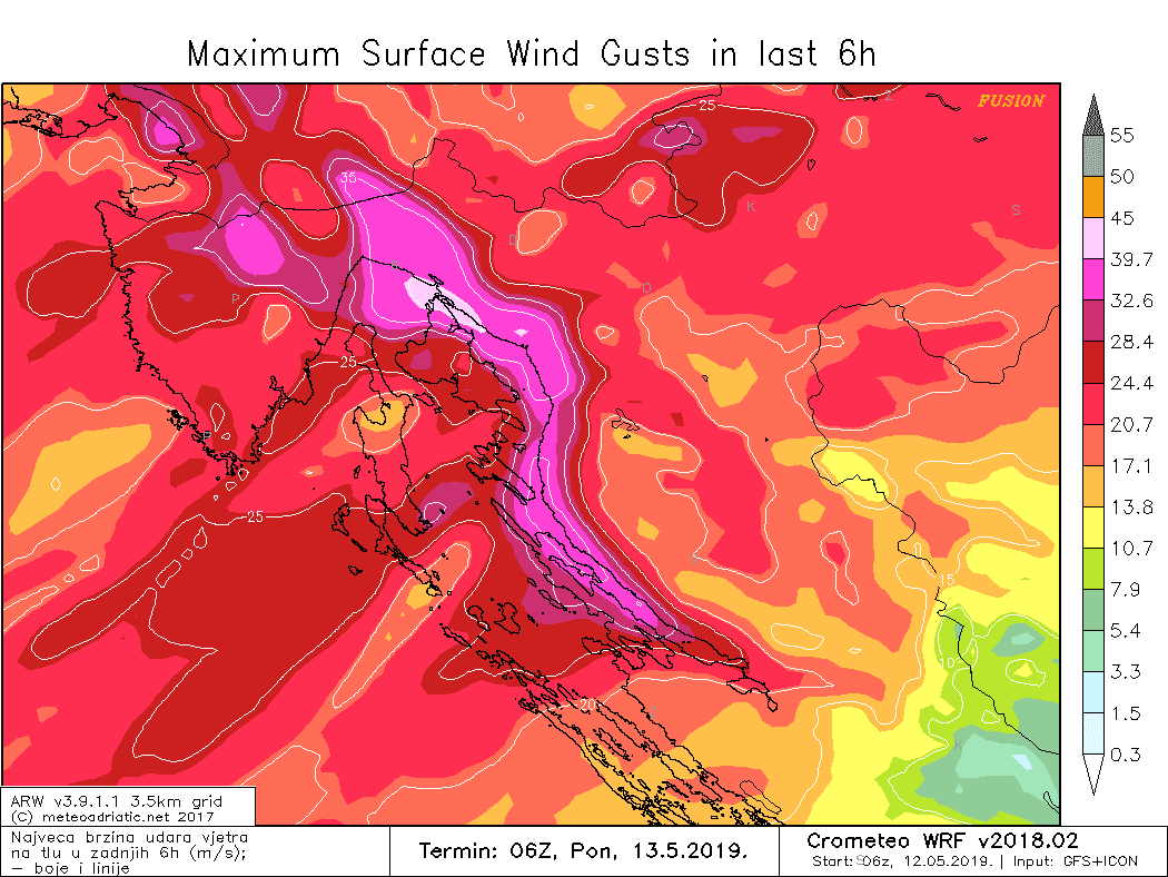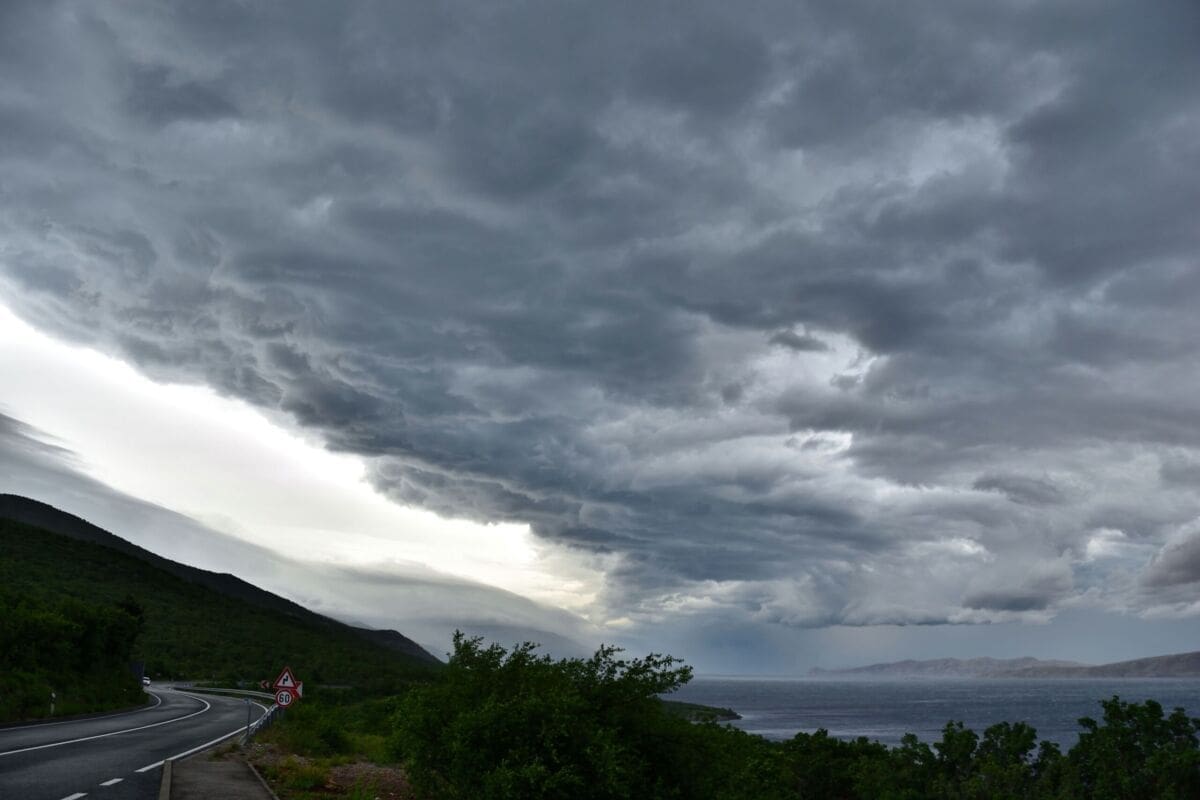 Na sjevernom Jadranu puše umjerena do jaka bura koja podno Velebita povremeno ima olujne udare. Bura će u noći na ponedjeljak stalno jačati pa su od Krčkog do Paškog mosta mogući udari i preko 160 km/h do kraja ponedjeljka. Bura je tijekom ponedjeljka uzrokovala manje probleme u cestovnom i pomorskom prometu, no tijekom ponedjeljka ti će problemi biti znatno veći.
