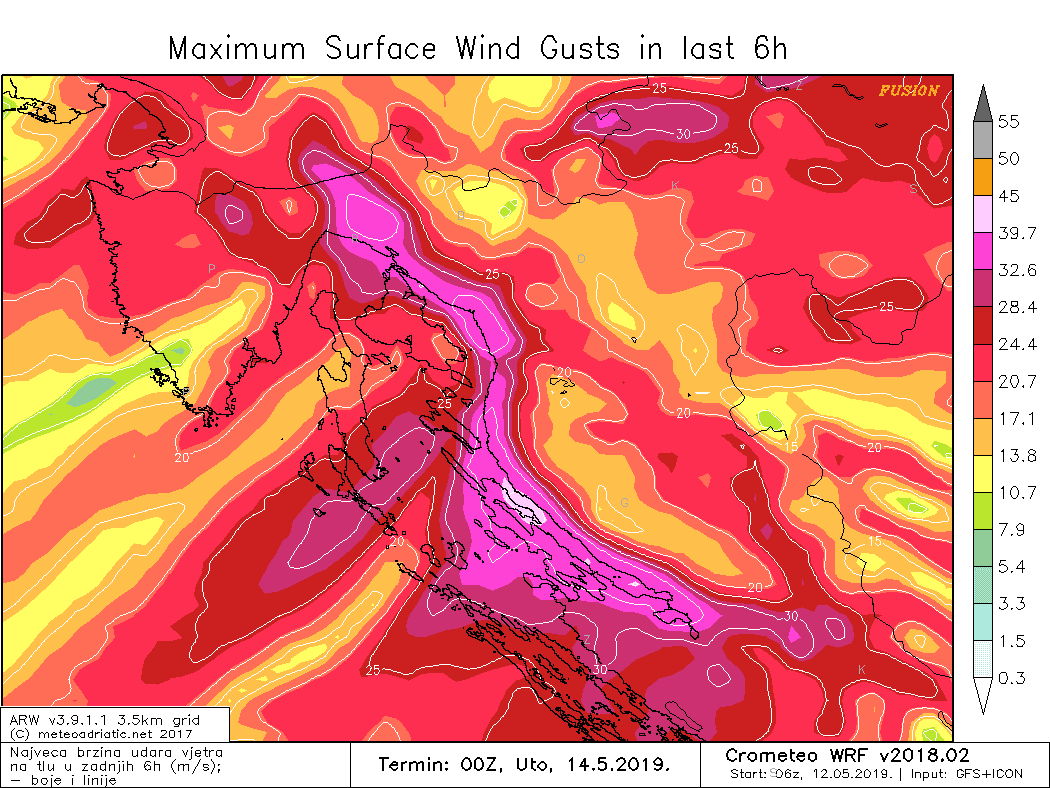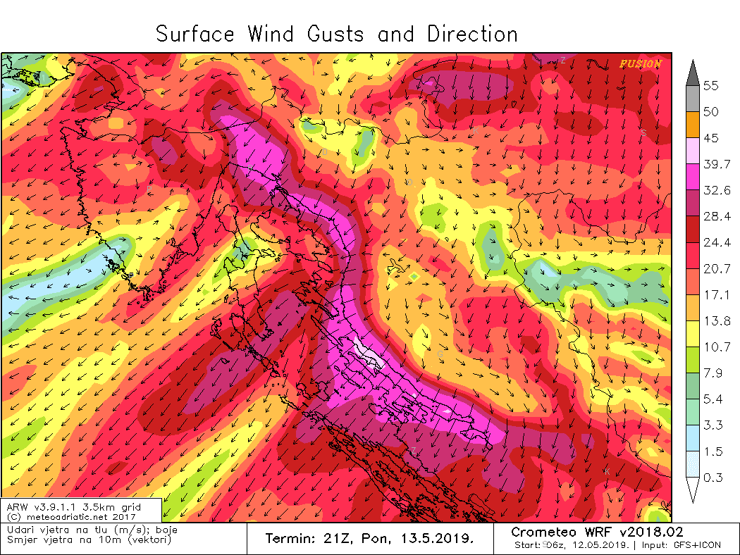 U Dalmaciji je puhalo umjereno do jako jugo, u Splitu službeno s udarima do 86 km/h. Bura će se do kraja ponedjeljka proširiti na cijelu obalu, ali u Dalmaciji neće biti ni približno snažna kao na sjevernom Jadranu. Ponedjeljak sjevernom Jadranu donosi zahlađenje, a u Dalmaciji se temperature do večeri neće znatno mijenjati.