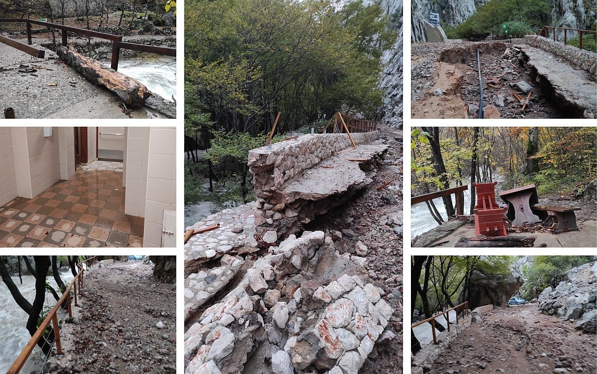 "Sa srijede na četvrtak je pala ogromna količina oborina na ovom području i došlo je do određenih šteta na lokalitetu Nacionalnog parka Paklenica. Naime, kroz park prolazi potok "Velika Paklenica" i on je jako nabujao i izlio se iz korita na više dijelova. Zbog toga je došlo do većih oštećenja na pješačkim stazama unutar parka", otkrila je za Dalmaciju Danas.