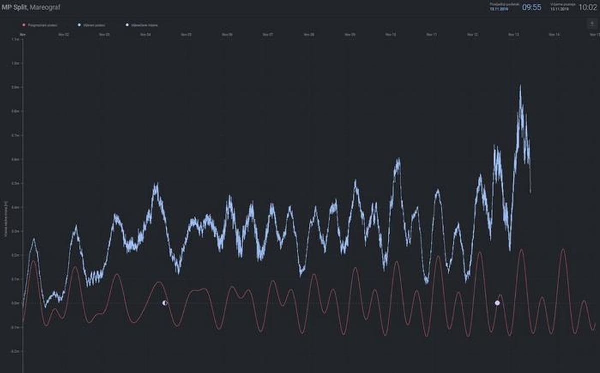 U srijedu 13. studenog 2019. godine na mareografskim postajama u Splitu i Pločama zabilježene su ekstremne razine mora.