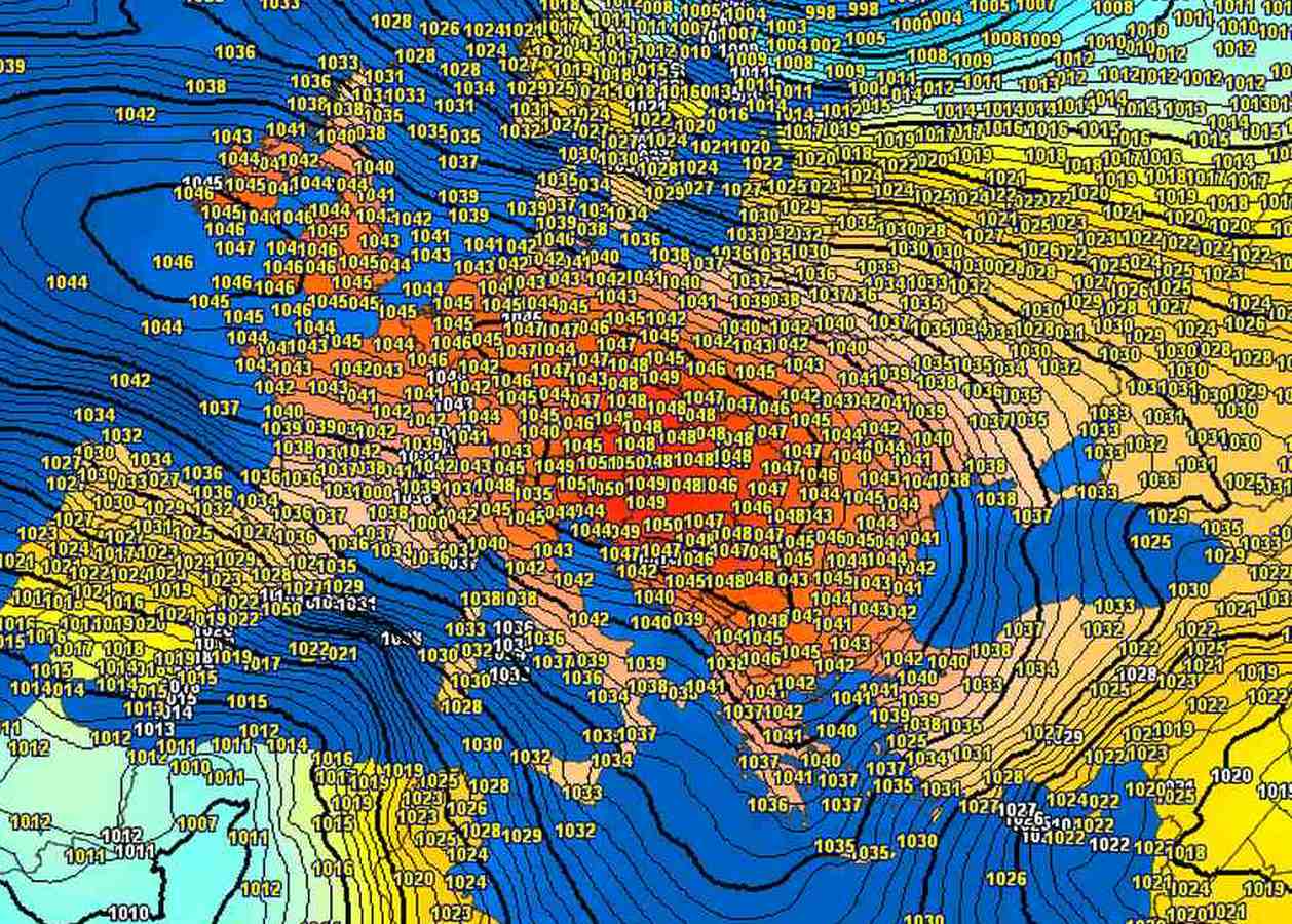 Polje visokog tlaka zraka prostire se većim dijelom europskog kontinenta, a centar ove iznimno snažne anticiklone nalazi se upravo iznad Hrvatske. U noćnim satima mjerne postaje DHMZ-a u unutrašnjosti zemlje na nekoliko lokacija su izmjerile reducirani tlak zraka od ekstremno visokih 1050 hektopaskala.