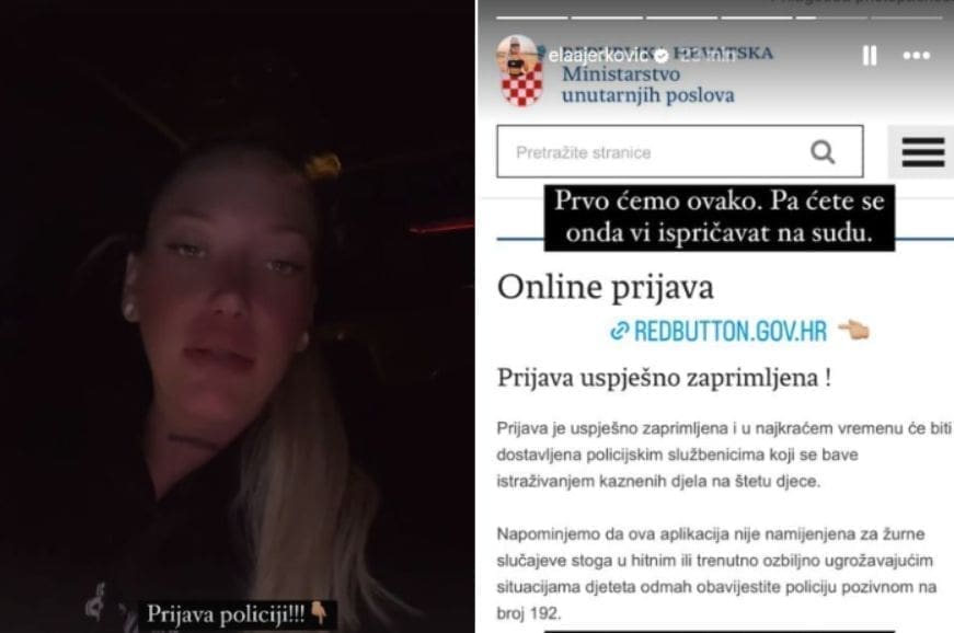 Sama je označila i medije da poprate slučaj, napisavši uz screenshot vlastite prijave: "Prvo ćemo ovako. Pa ćete se onda vi ispričavat na sudu."