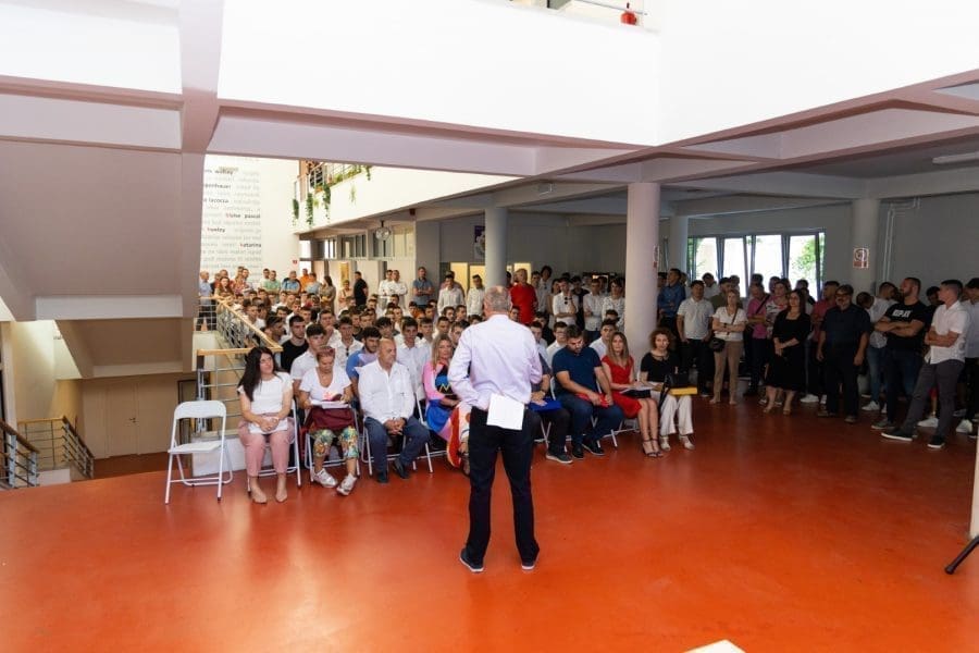 Na početku programa, svim prisutnima obratio se ravnatelj Obrtno tehničke škole gospodin Milivoj Kalebić koji je ovom prilikom izjavio: “Izuzetno mi je zadovoljstvo da još jednom uspješno završavamo školsku godinu a posebno sam sretan što od danas, sa svjedodžbama u rukama, ovi mladi ljudi postaju konkurentni na tržištu rada i poželjni zaposlenici tvrtkama u sektoru. Ponosan sam što ova škola objedinjuje tri čimbenika koji utječu na to da naši učenici postaju uspješni ljudi: kvalitetan školski program, naglasak na praktičnom radu uz podršku mentora i majstora te povezanost škole s udrugom poslodavaca.”