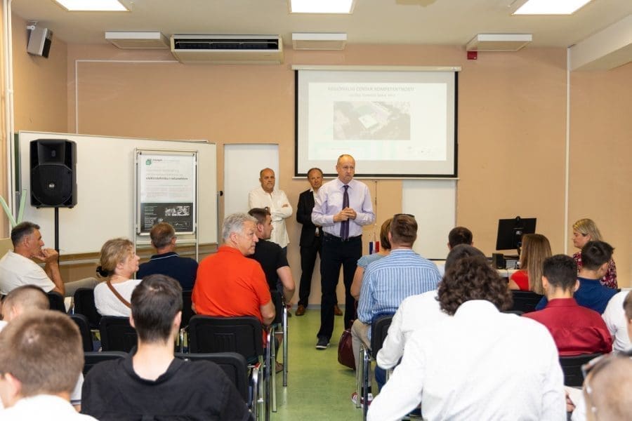 U srijedu, 15. lipnja u Obrtno tehničkoj školi u Splitu održao se Strukovni sajam, jedna od brojnih aktivnosti projekta “Uspostava regionalnog centra kompetentnosti za elektrotehniku i računalstvo Splitsko dalmatinske županije”. Strukovni sajam okupio je učenike trećih i četvrtih razreda, razrednike, mentore, poslodavce kao i predstavnike Hrvatske obrtničke komore, Hrvatske gospodarske komore te županijskog ureda za prosvjetu Splitsko-dalmatinske županije.