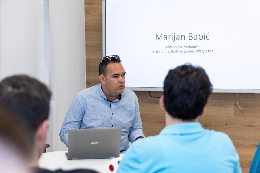Kao najbolji primjer upravo ovih čimbenika koje je ravnatelj Kalebić spomenuo, učenicima se predstavio Marijan Babić, bivši učenik Obrtno tehničke škole a danas uspješan poduzetnik i vlasnik obrta Tesus. Uz svoje iskustvo školovanja, gdje je posebno istaknuo vrijednost praktične nastave, Marijan je učenicima ispričao svoj poduzetnički put u kojem su veliku ulogu odigrali i njegovi bivši profesori za koje je imao samo riječi hvale jer su nakon školovanja nastavili pratiti razvoj svojih učenika i preporučili ih poslodavcima. Ivano Trumbić iz tvrtke Finest-Akku predstavio je svoja najnovija dostignuća na području proizvodnje baterija, te učenicima na taj način pokazao koliko su njihova zanimanja suvremena i mogu ići ukorak sa svim izazovima budućnosti.