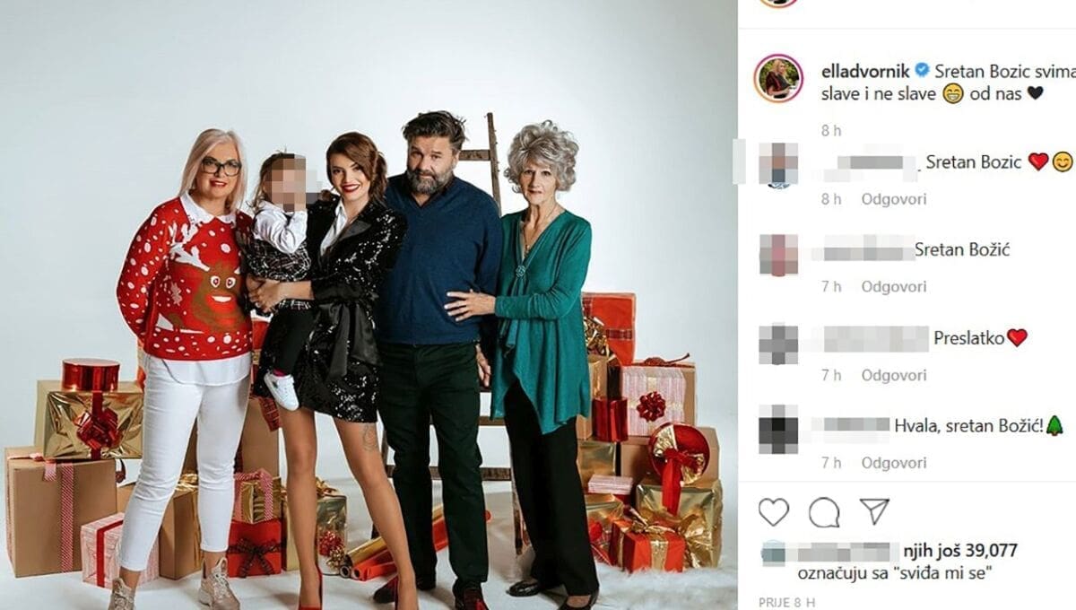"Sretan Božić svima koji slave i ne slave od nas", tim je riječima Ella Dvornik čestitala Božić na Instagramu. Napravila je to ispod obiteljske fotografije u pravom blagdanskom ozračju. Na fotografiji se vide njen suprug Charles i njihova kćerkica Balie te njena i Charlesova majka.